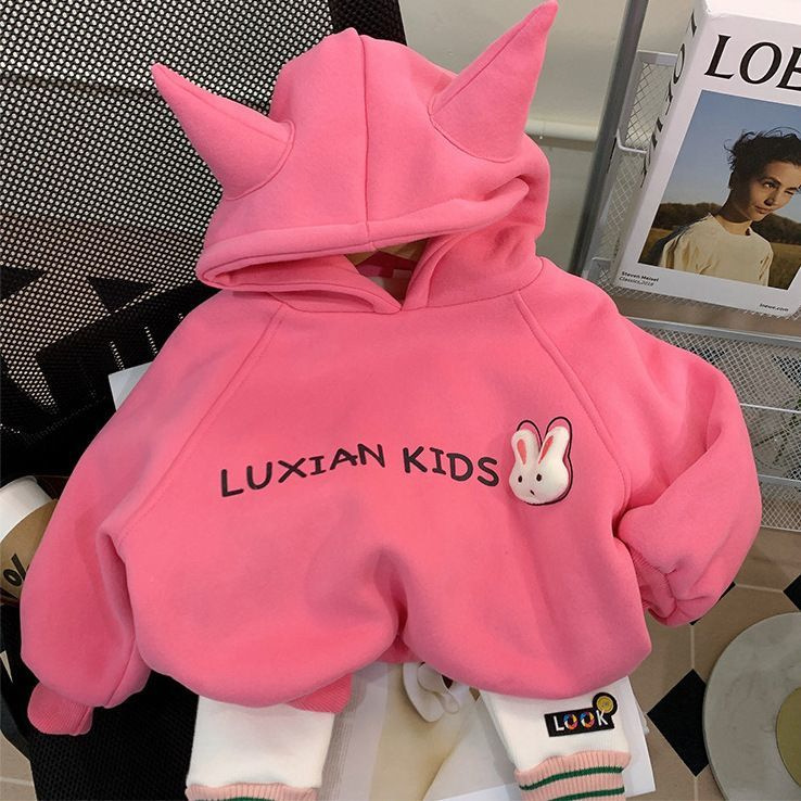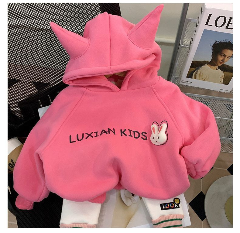 소녀 후드 기모 땀 세트 가을 및 겨울 새로운 도착 여성의 스타일리시 따뜻한 재킷 레깅스 2 피스 세트스토어 가기