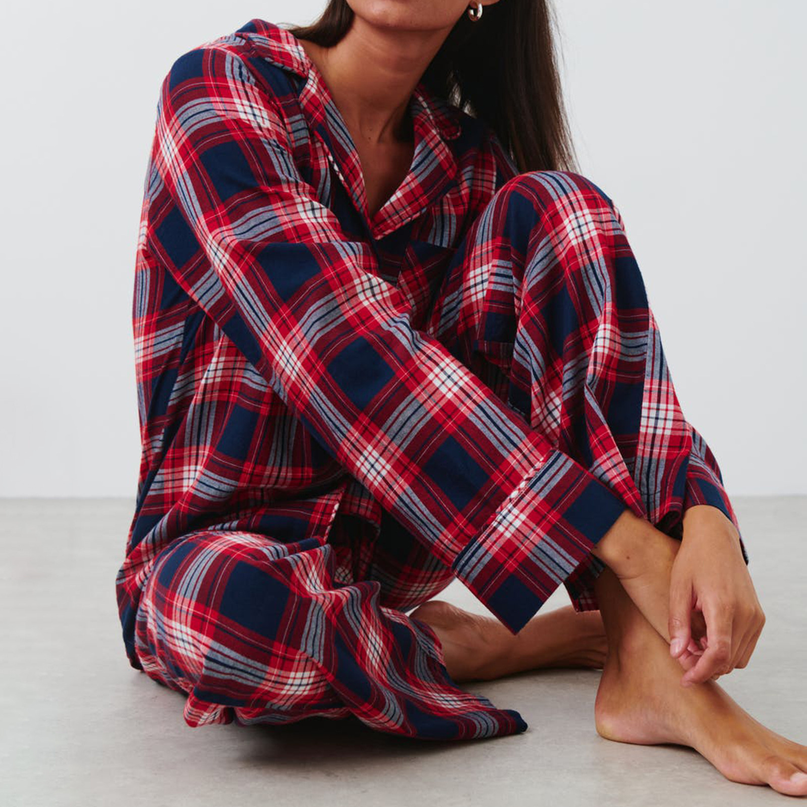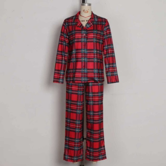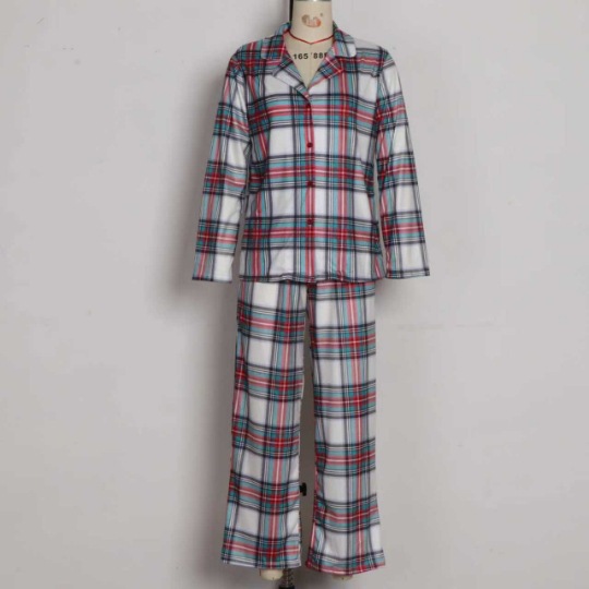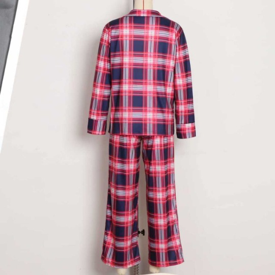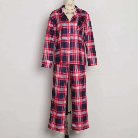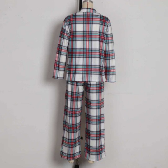 대외 무역 직접 판매 여성 홈 의류 유럽과 미국의 국경 간 체크 무늬 프린트 2 피스 긴 소매 바지 캐주얼 여성 잠옷