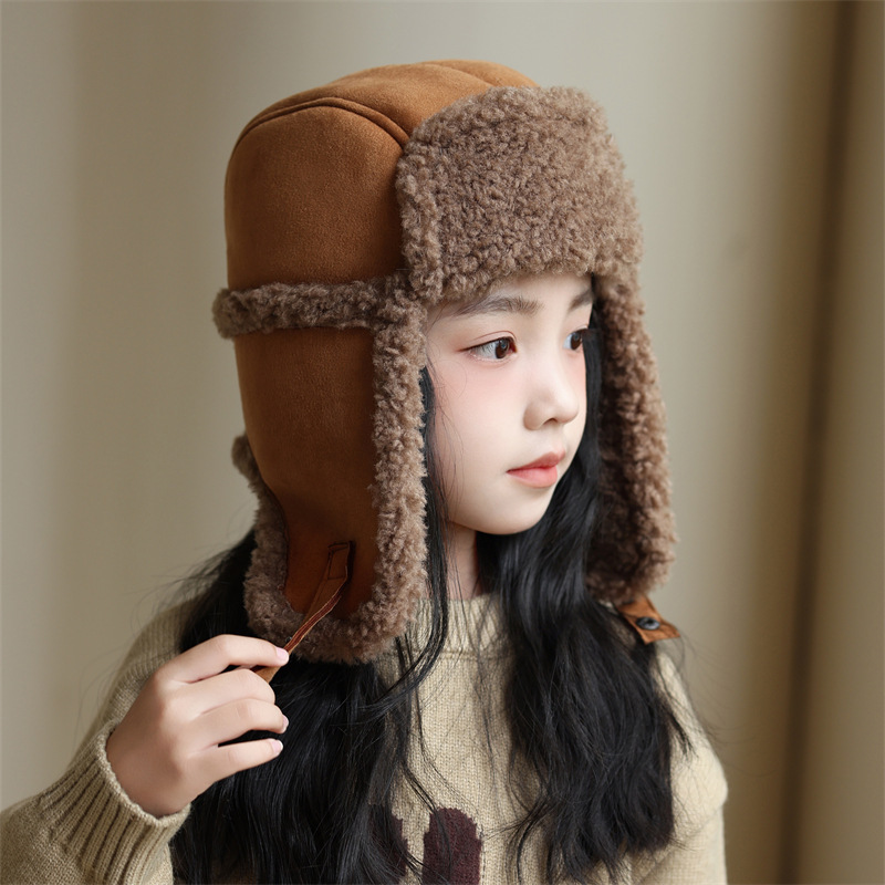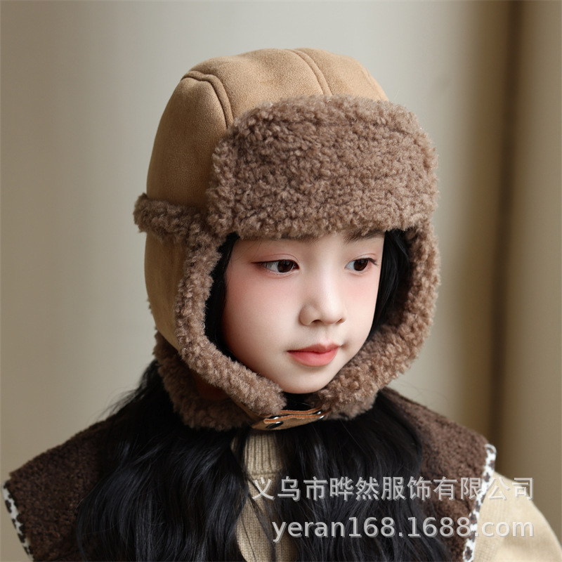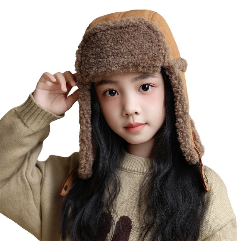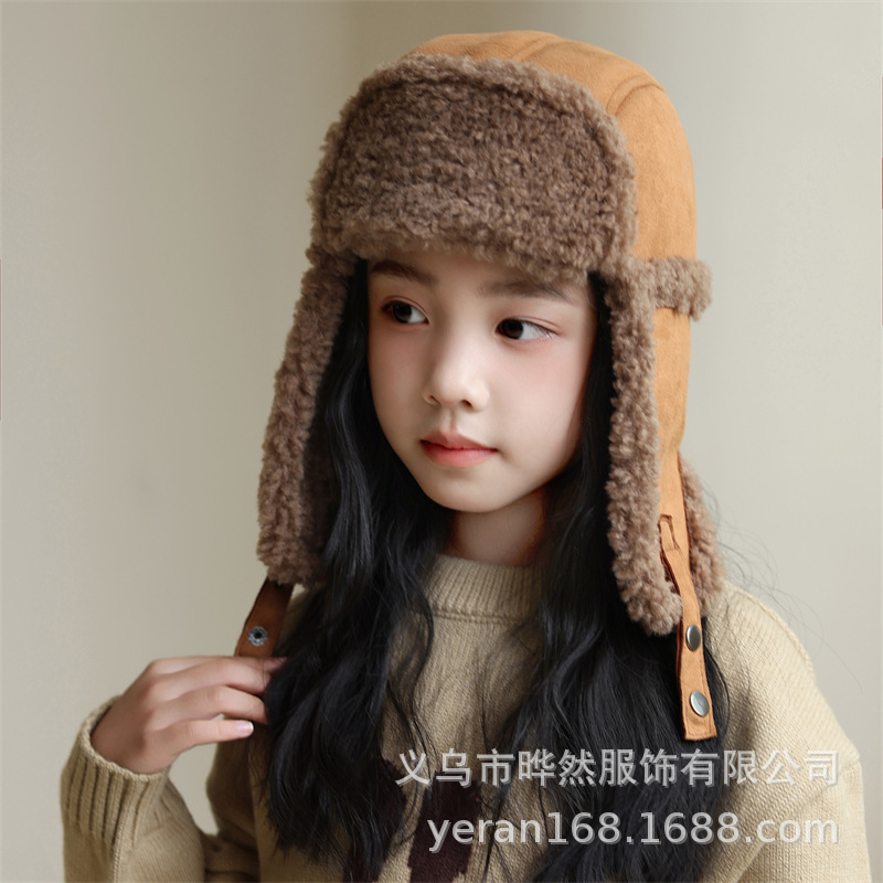 스웨이드 레이 펑 모자 어린이 겨울 방풍 찬 귀 보호 스키 모자 동북 사이클링 코튼 모자 야외 콜드 햇