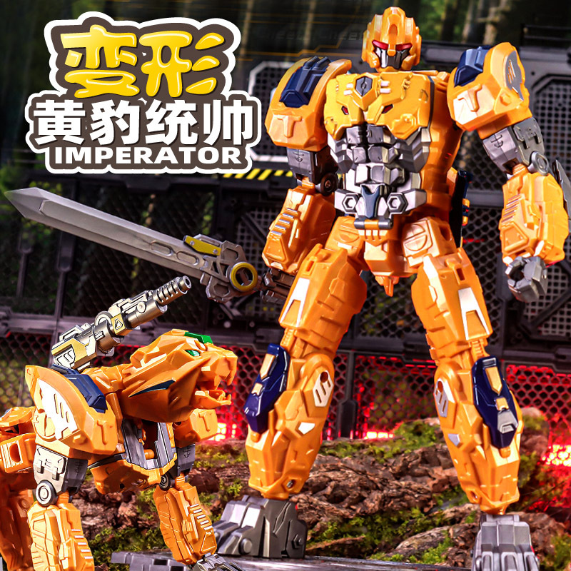 힘은 장난감 노란색 표범 사령관 합금 로봇 국가 조수 전사 짐승 모델을 무기 어린이 소년으로 변형시킬 것입니다스토어 가기