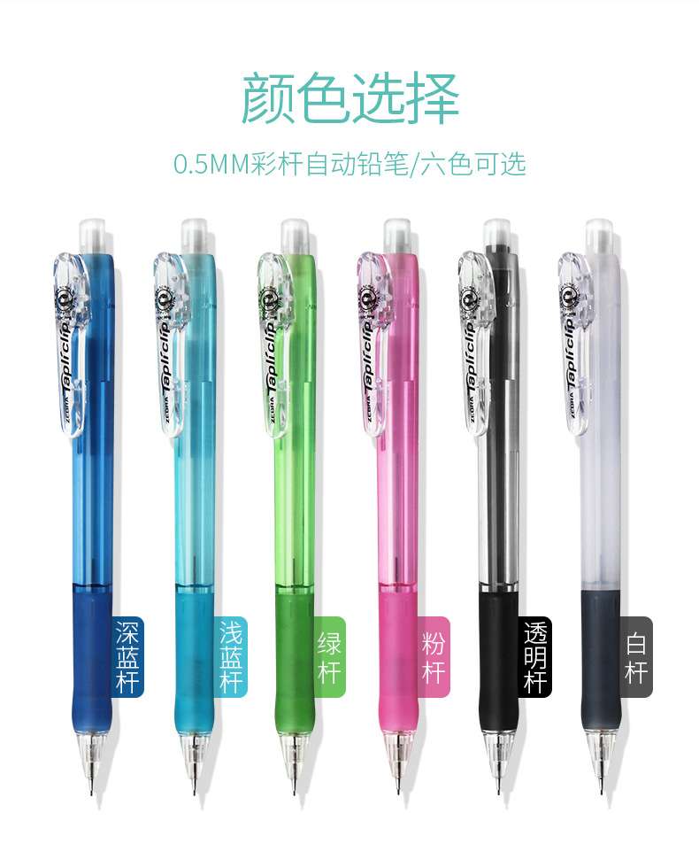얼룩말 기계식 연필 0.5 학생 MN5 부드러운 고무 펜은 접이식 펜촉을 들고 남성과 여성의 색상 자동 펜을위한 리드를 깨기 쉽지 않습니다.