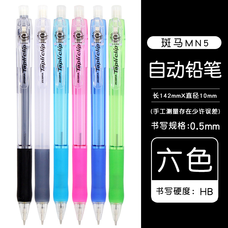 얼룩말 기계식 연필 0.5 학생 MN5 부드러운 고무 펜은 접이식 펜촉을 들고 남성과 여성의 색상 자동 펜을위한 리드를 깨기 쉽지 않습니다.스토어 가기