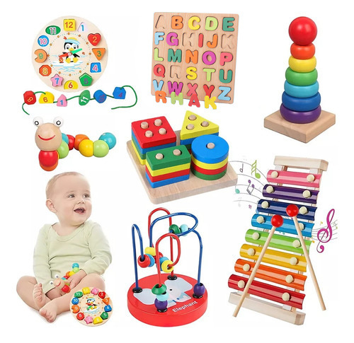 • 7종 세트 [노킹피아노 + 코끼리구슬 + 시계 + 무지개탑 + 컬러풀한 사각기둥 4개 + 사각문자판 + 벌레]
