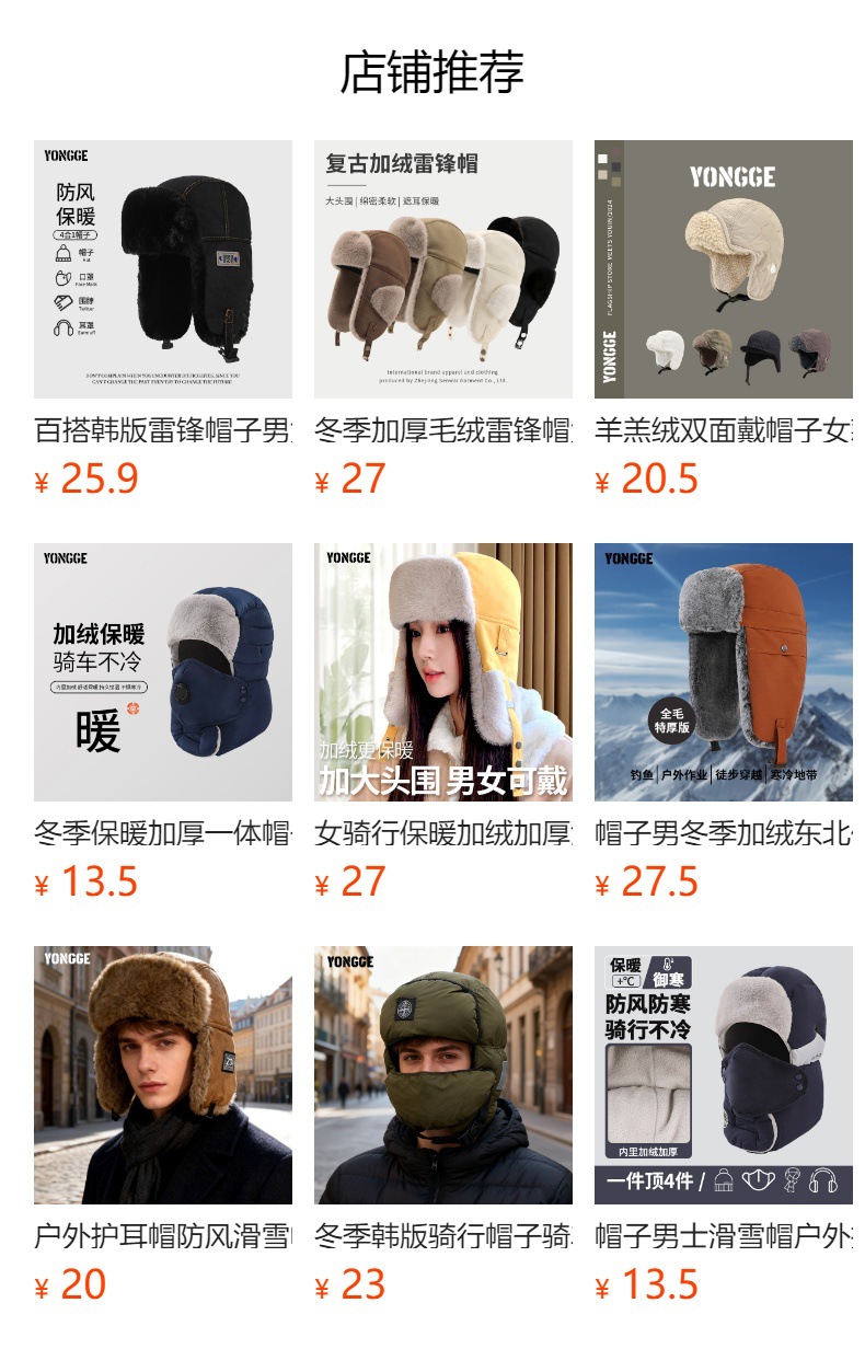 모자 남성용 스키 모자 야외 귀 보호 방풍 레이펑 모자 겨울용 면 모자 보온 파일럿 방한 라이딩 모자스토어 가기
