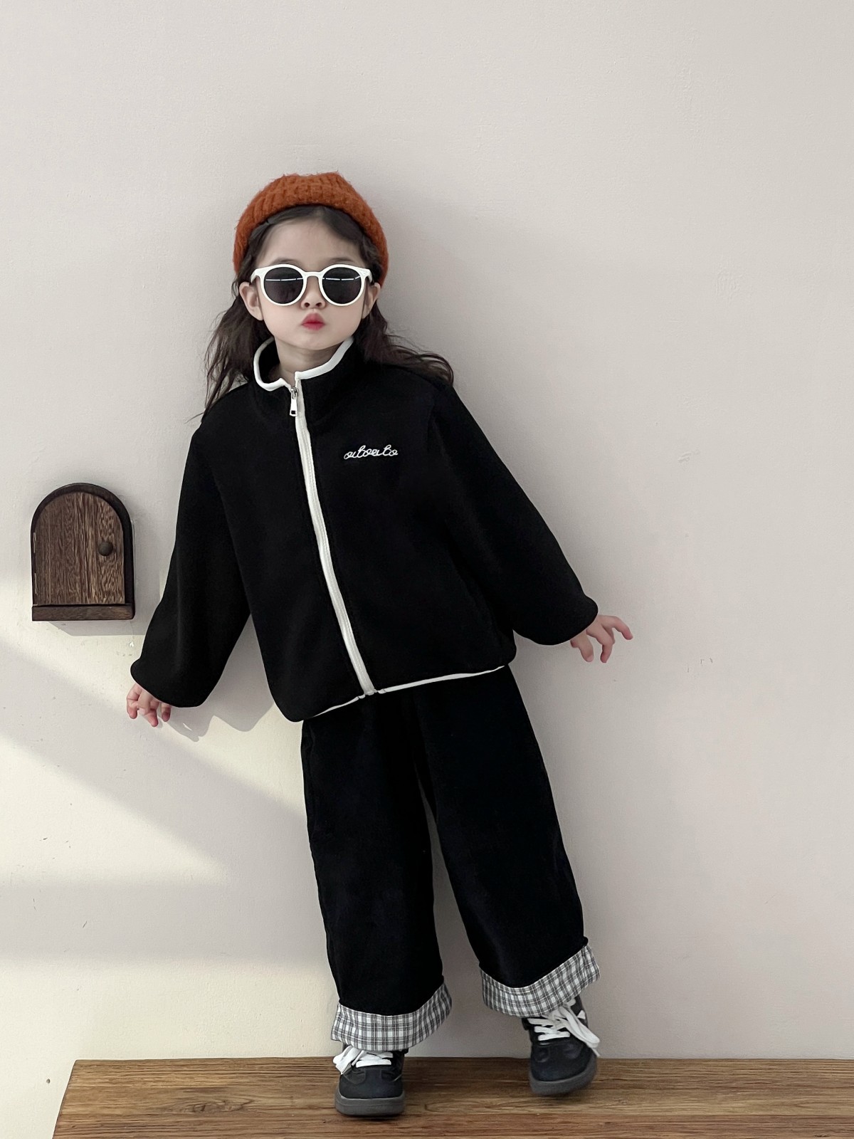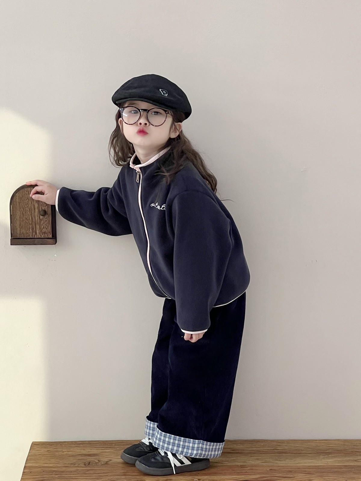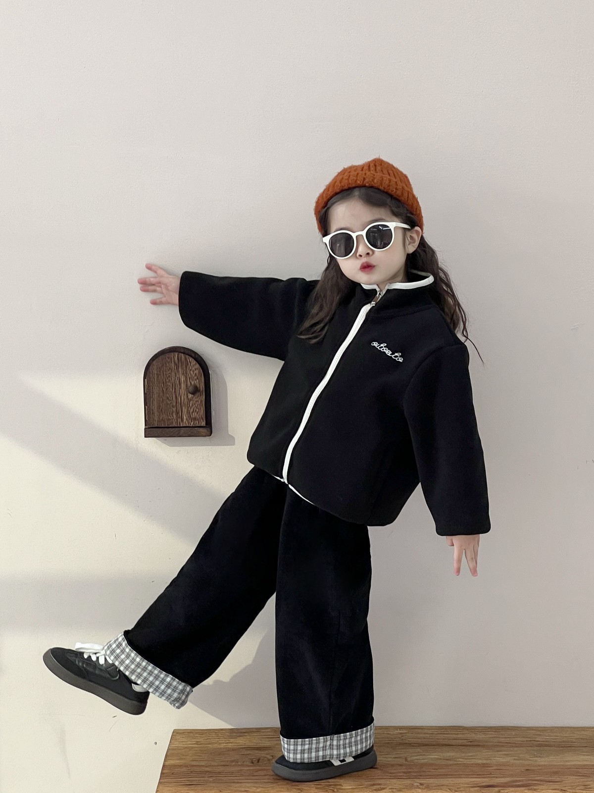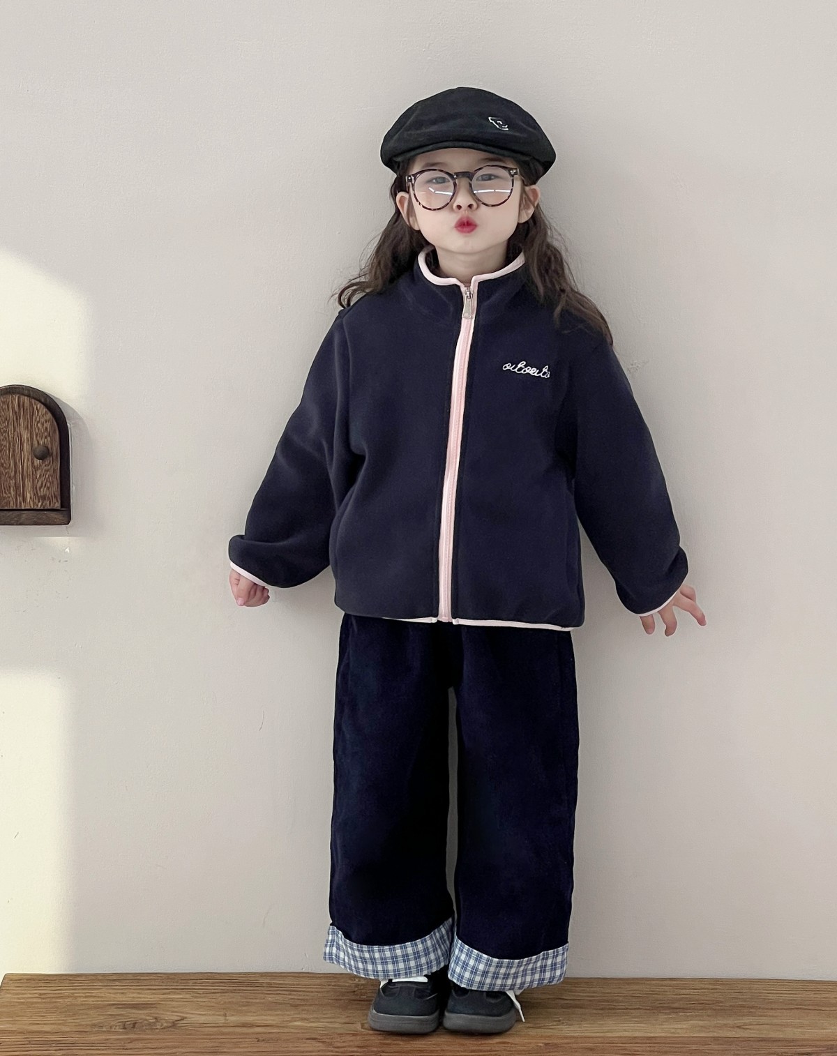 2024 가을과 겨울 남학생과 여학생을위한 새로운 어린이 바닥 코트 모피 코트 아기 따뜻한 내부