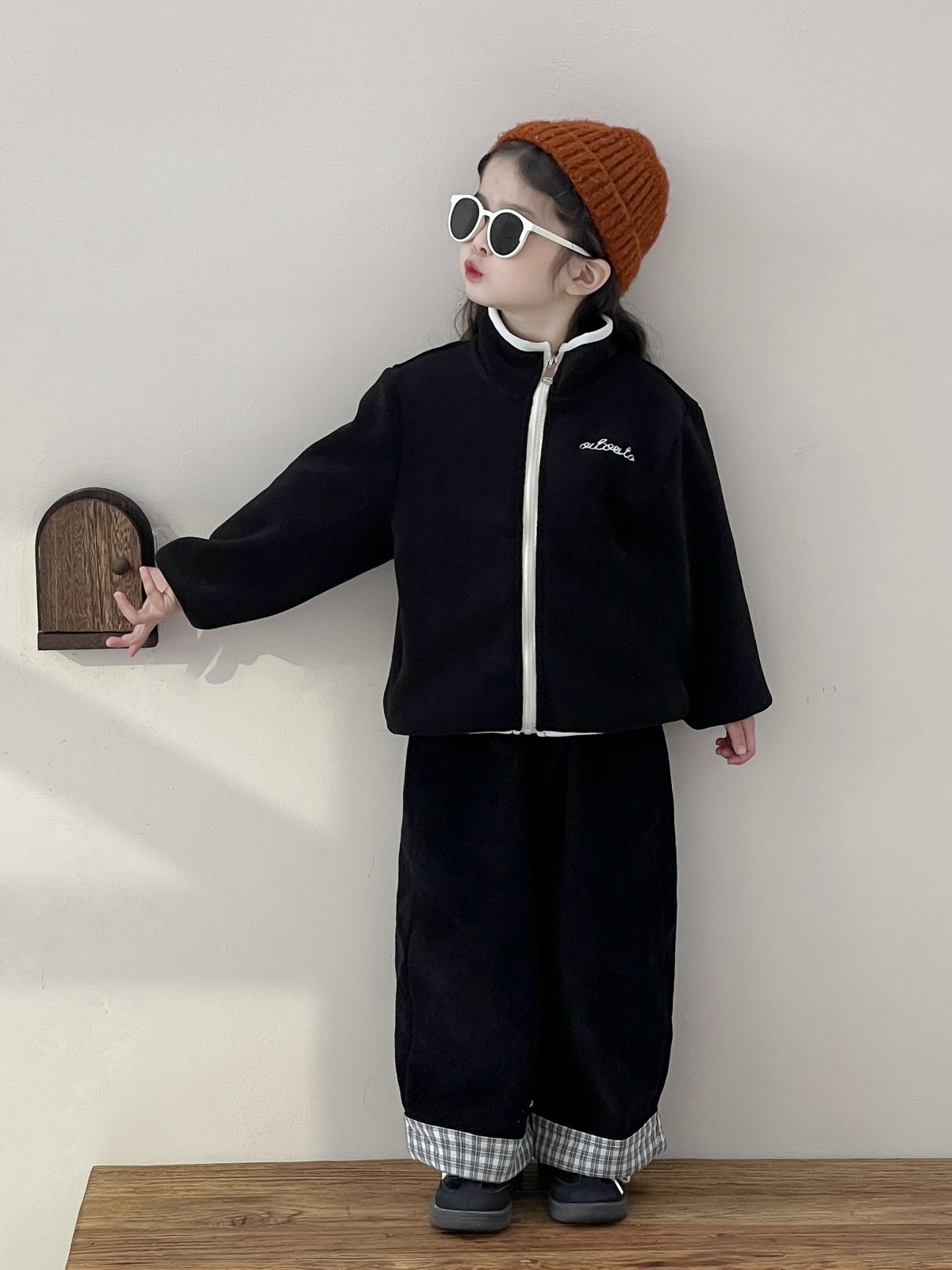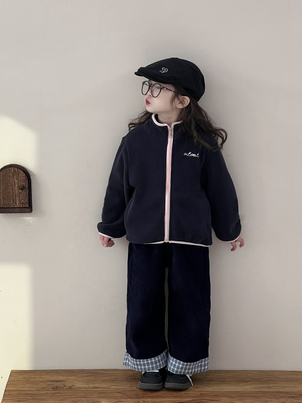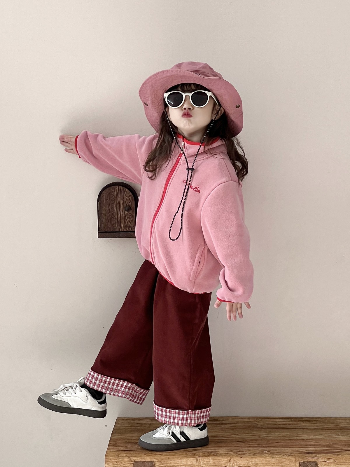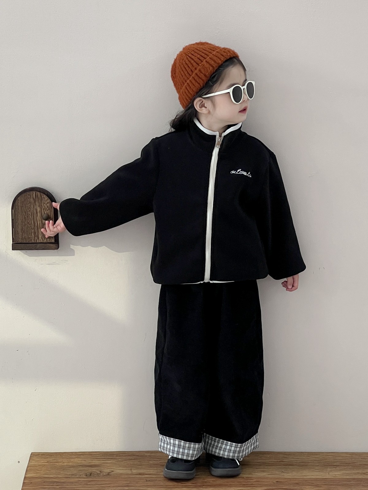 2024 가을과 겨울 남학생과 여학생을위한 새로운 어린이 바닥 코트 모피 코트 아기 따뜻한 내부
