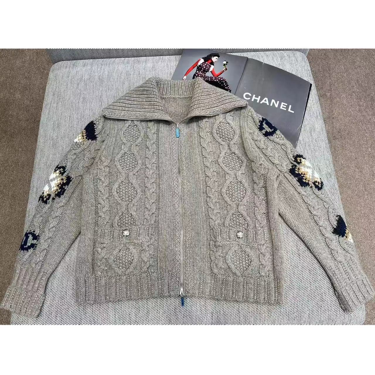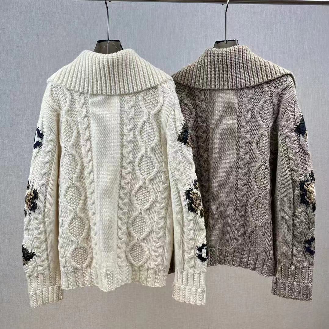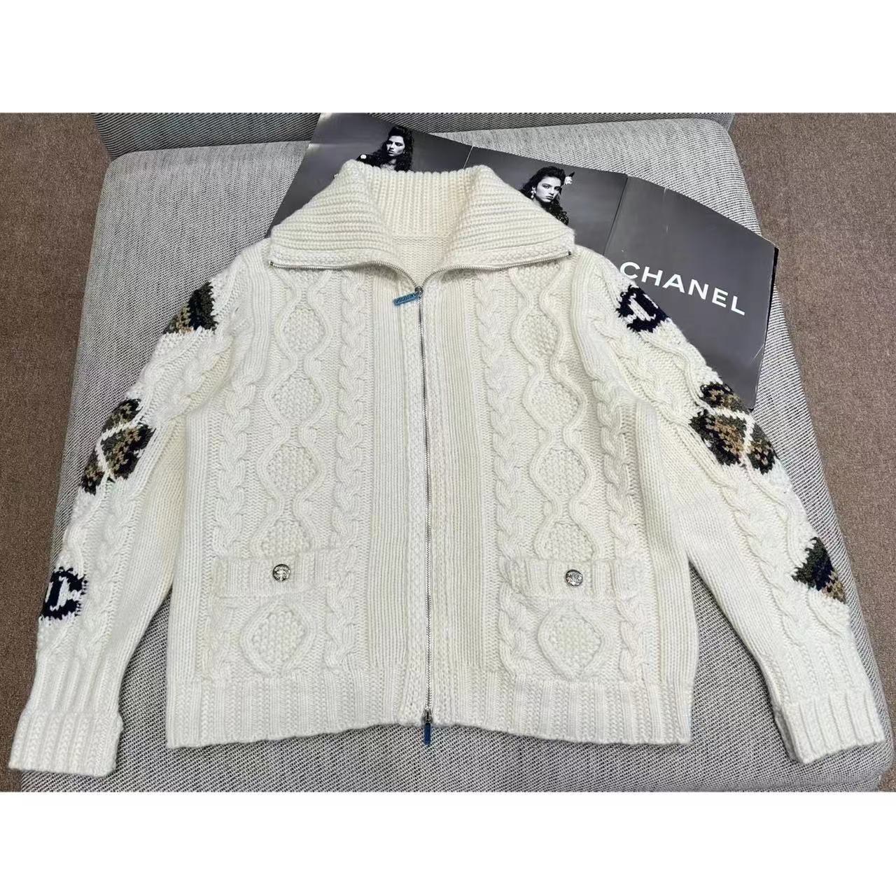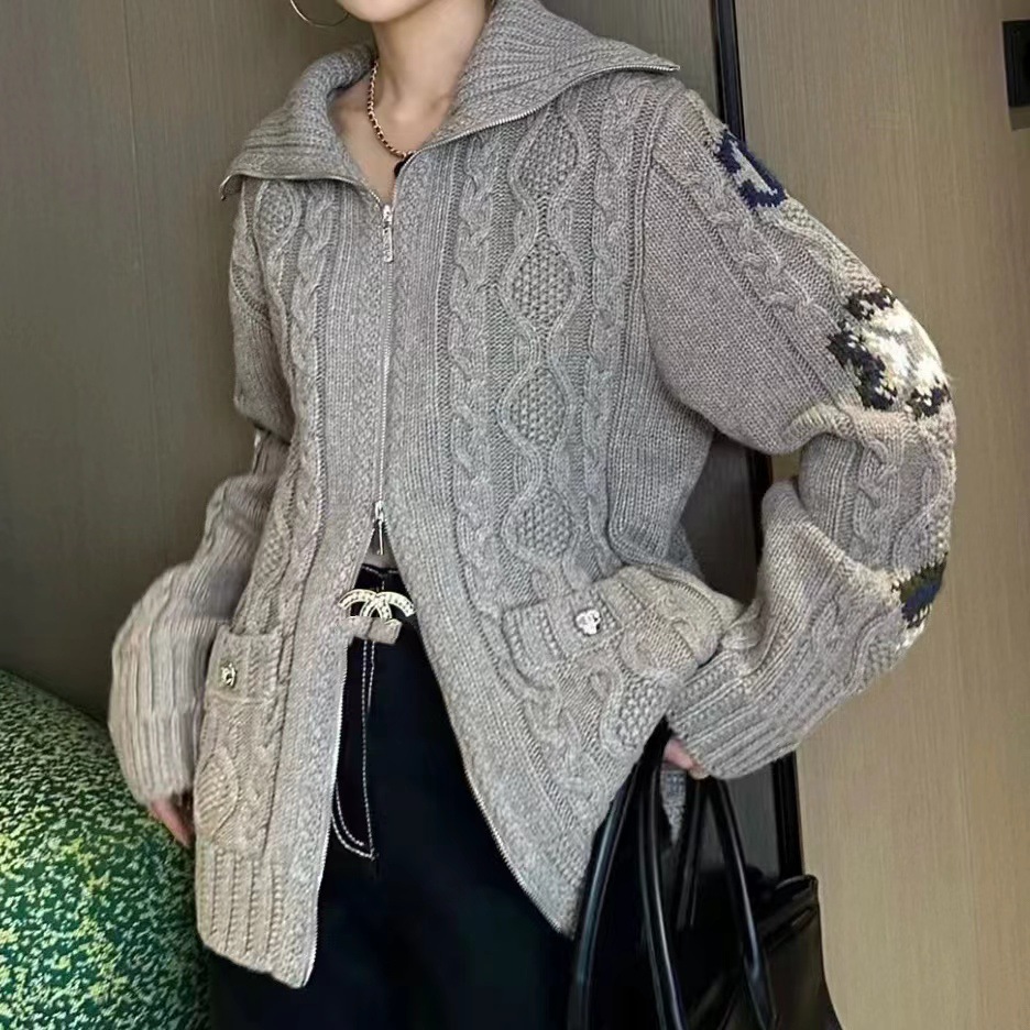 Xiaoxiang 2024 가을 및 겨울 새로운 자카드 더블 지퍼 옷깃 양모 니트 카디건 여성용 캐주얼 스웨터 재킷스토어 가기