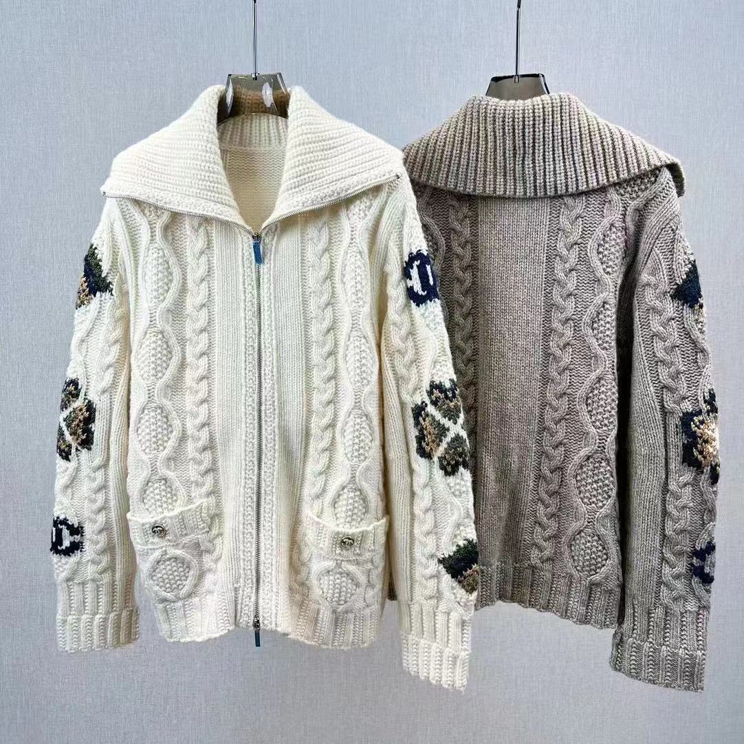 Xiaoxiang 2024 가을 및 겨울 새로운 자카드 더블 지퍼 옷깃 양모 니트 카디건 여성용 캐주얼 스웨터 재킷