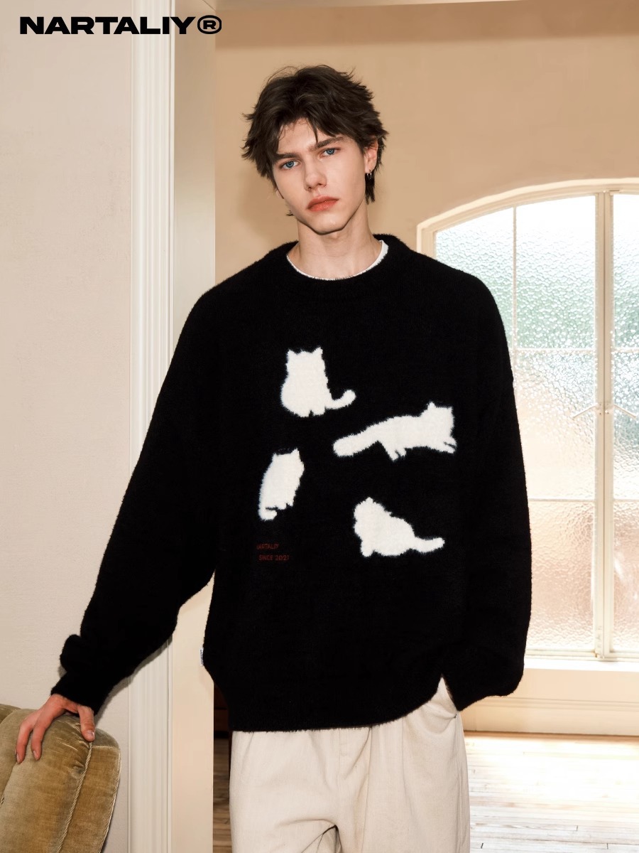 가을, 겨울 두꺼운 밍크 스웨터 남성 한국 스타일 트렌디 루즈 스웨터 커플 ins 홍콩 스타일 게으른 스타일 스웨터 재킷스토어 가기