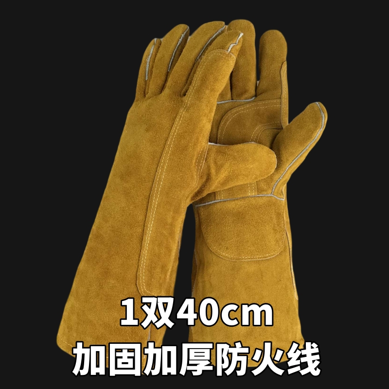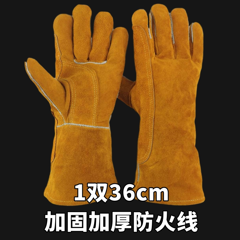 전기 용접 장갑 소 가죽 고온 방지 부드러운 긴 용접기 단열 노동 보호 두꺼운 왼손 야외 수입스토어 가기