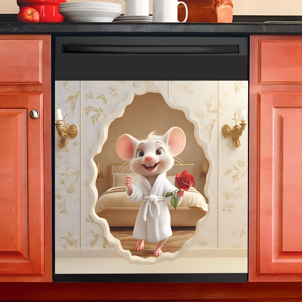 Fun-f448 대외 무역 귀여운 작은 마우스 장미 주방 레스토랑 홈 배경 미화 장식 벽 스티커