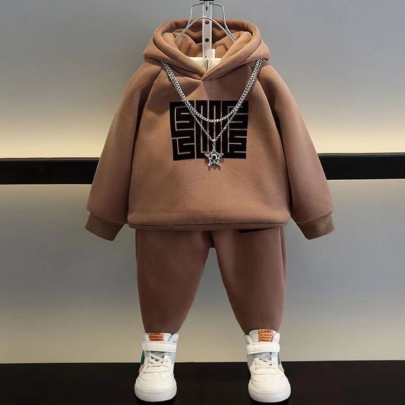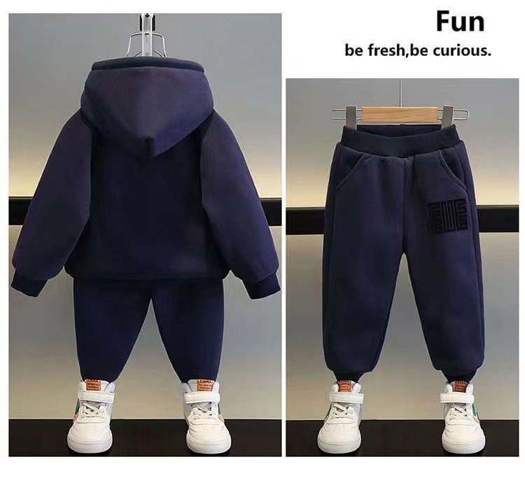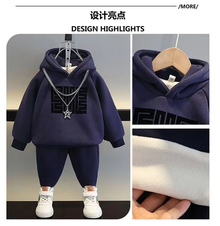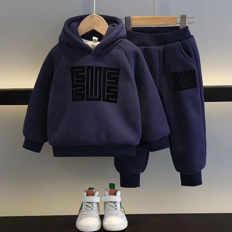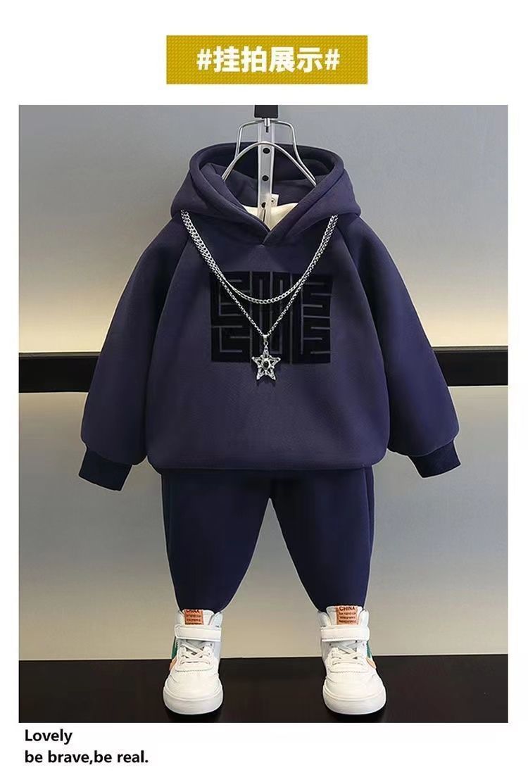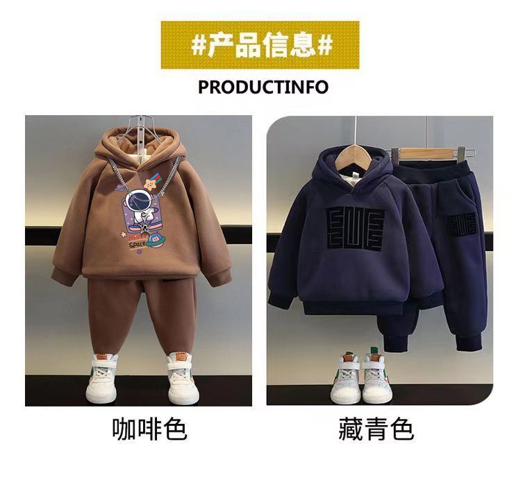 소년 가을 겨울 세트 봄 새로운 어린이 의류 잘 생긴 소년 기모 땀 투피스 옷 유행 보물스토어 가기
