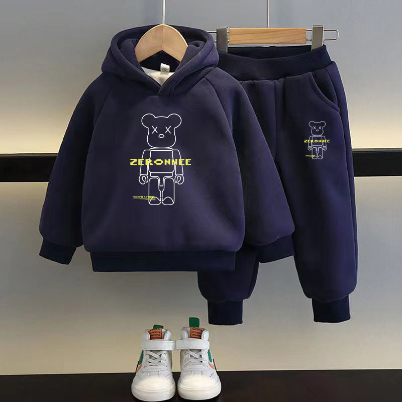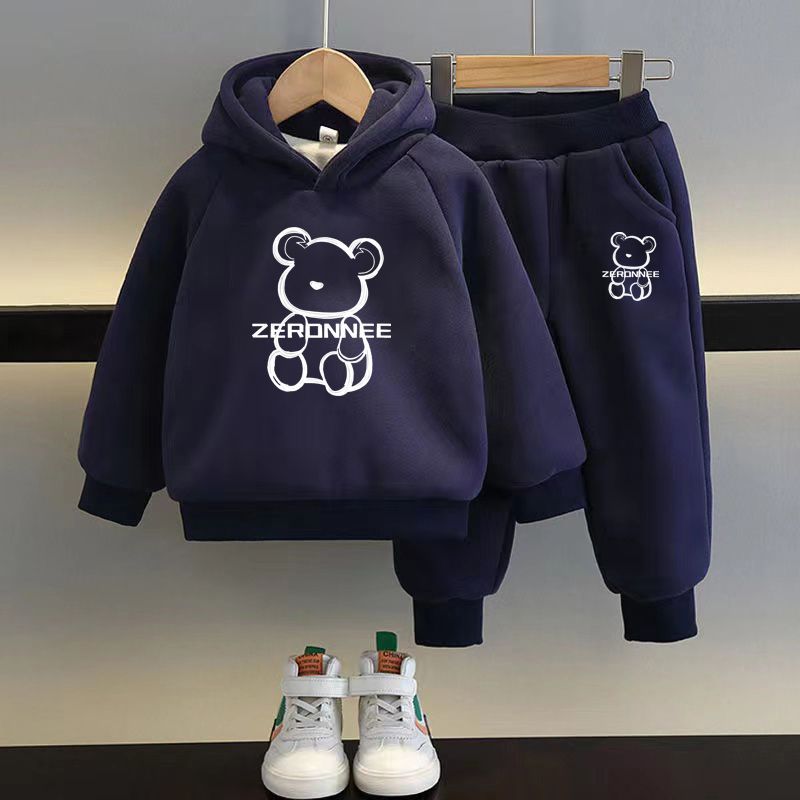 • 트렌디 베어 네이비 블루 스웨트셔츠 + 팬츠 플러스 벨벳
