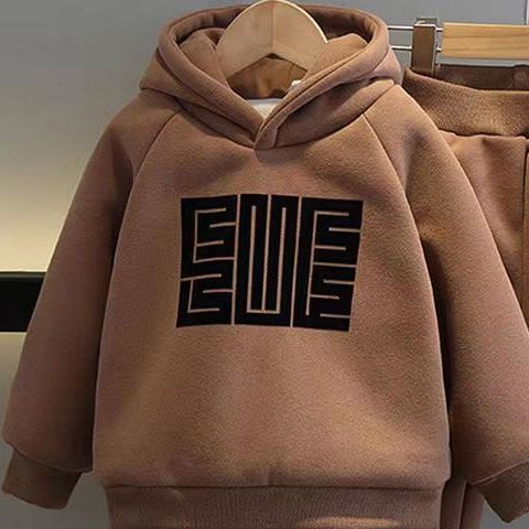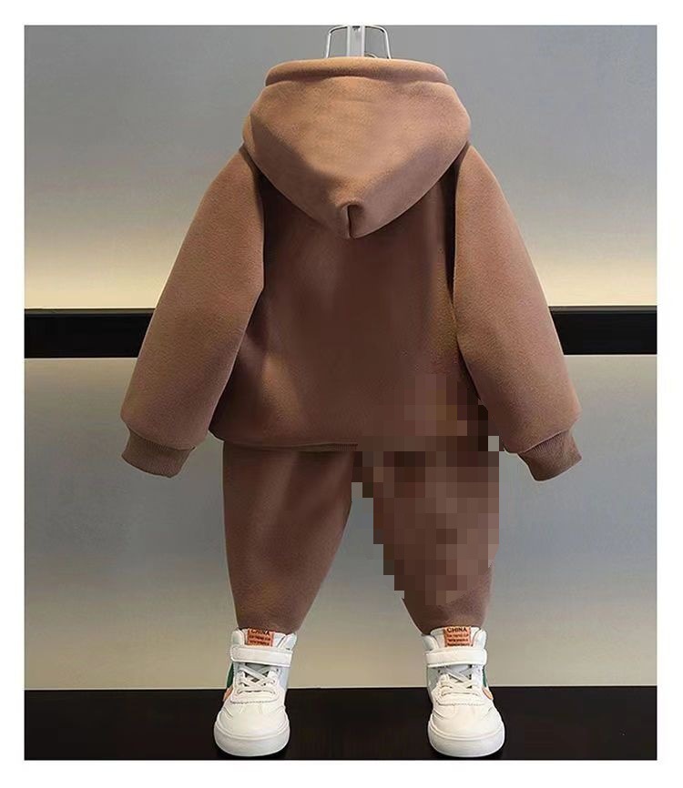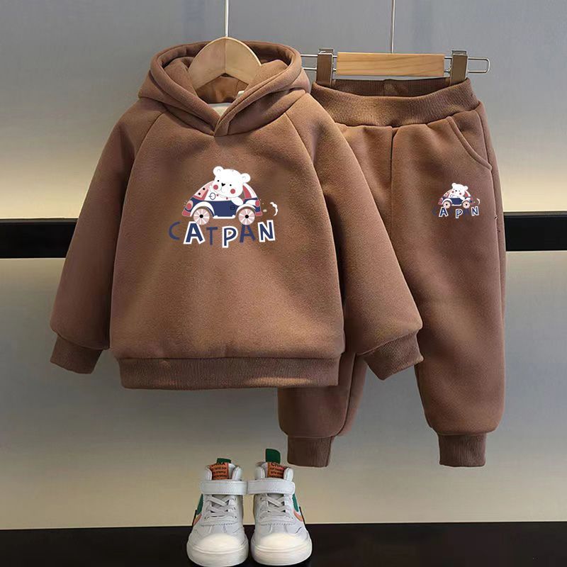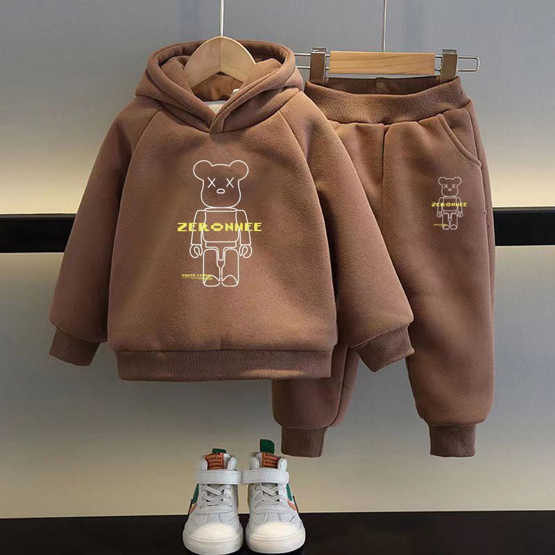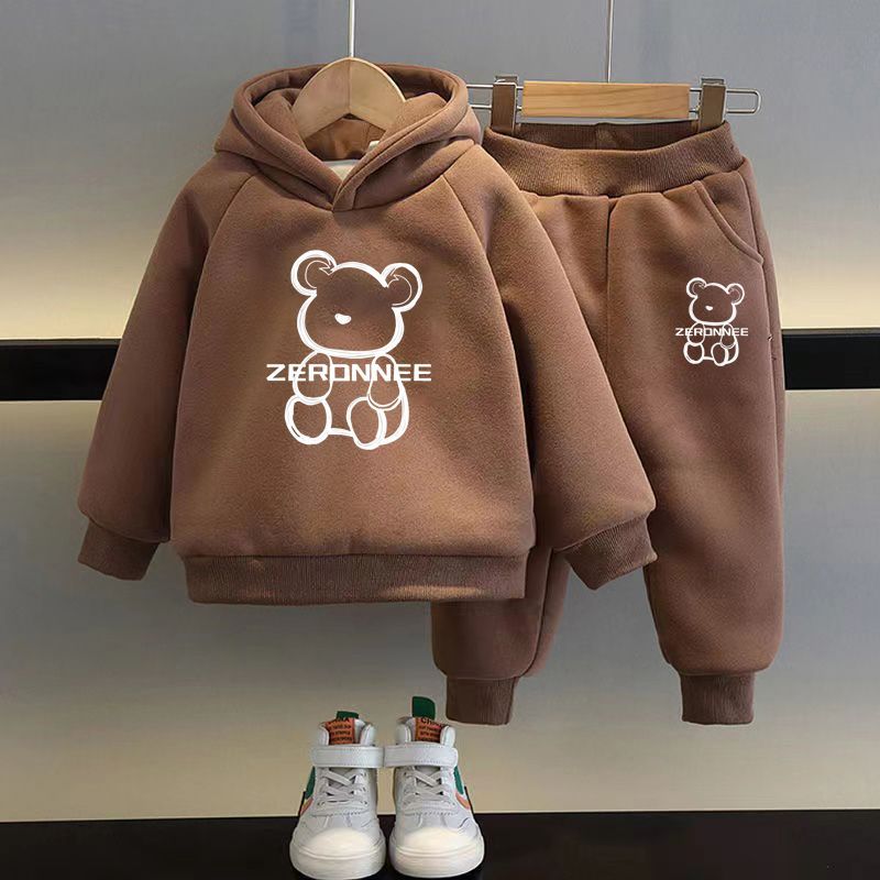 • 트렌디 베어 브라운 스웨트셔츠 + 팬츠 플러스 벨벳 스타일