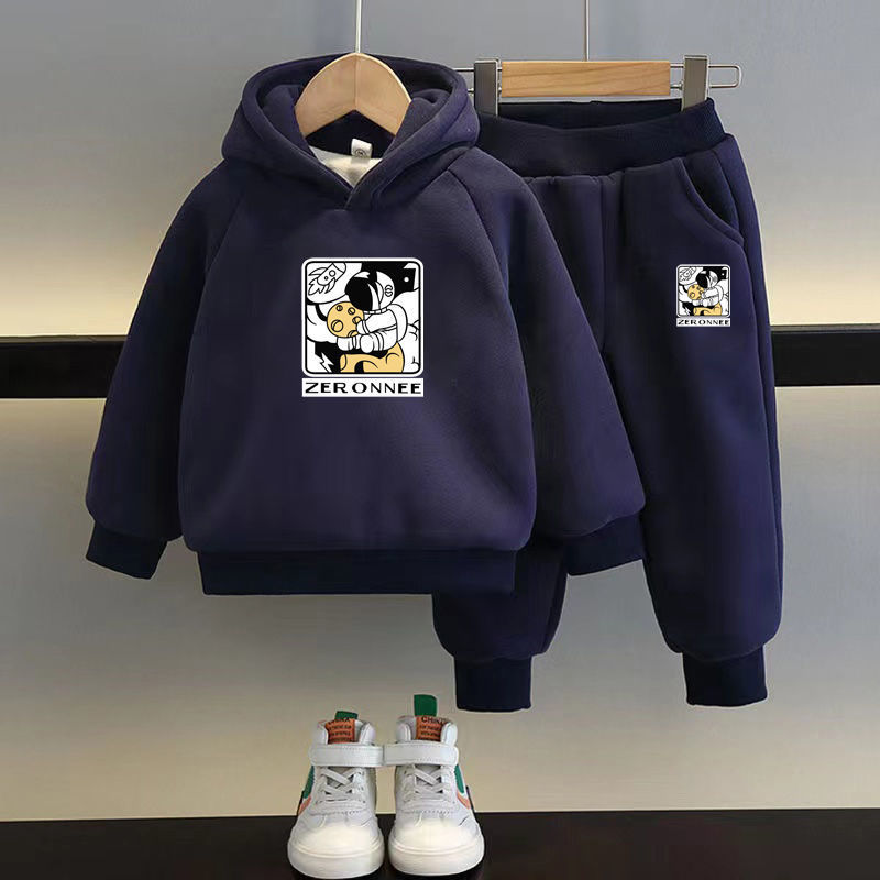 • 우주 비행사 네이비 블루 스웨트셔츠 + 바지 플러스 벨벳