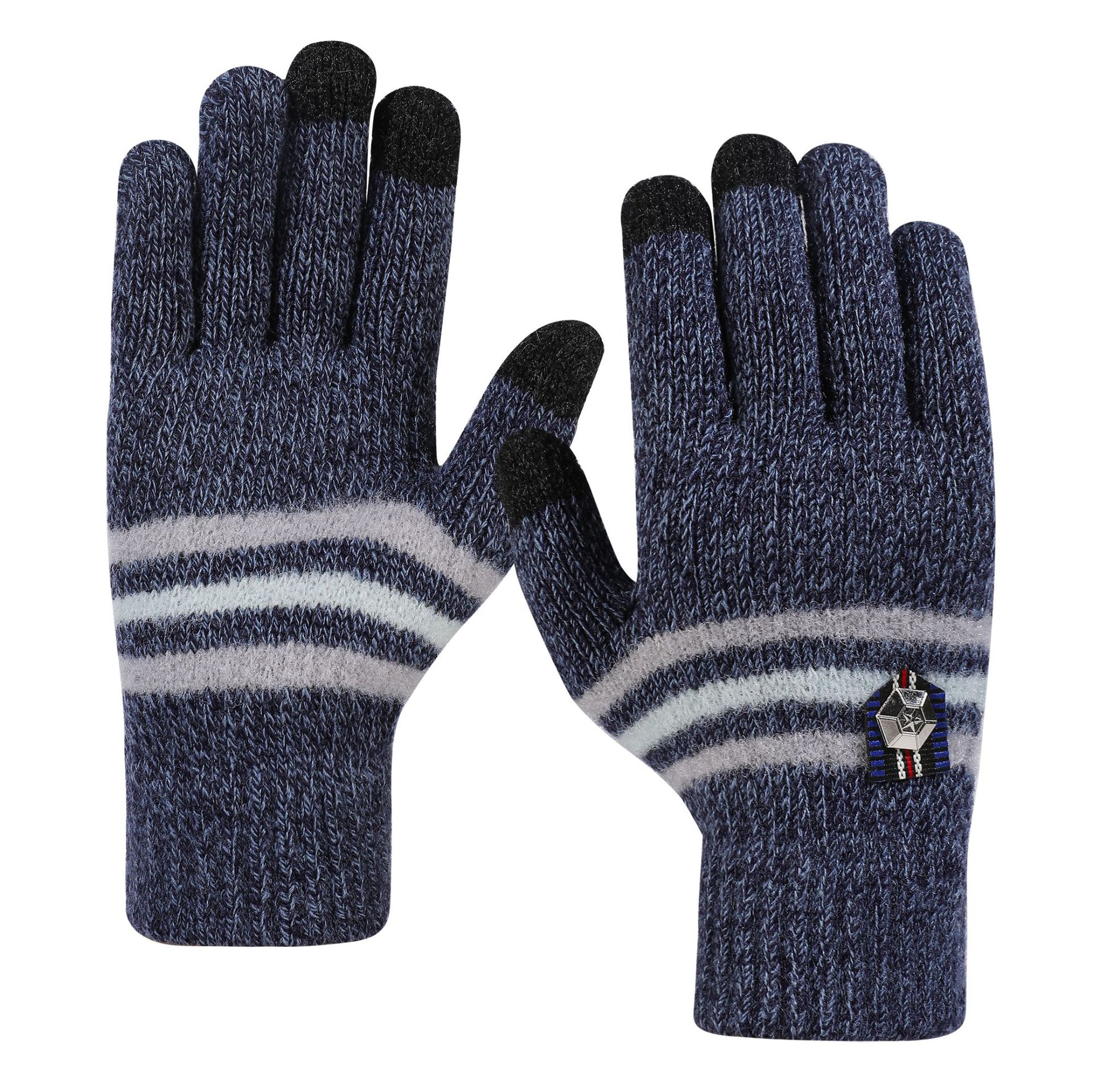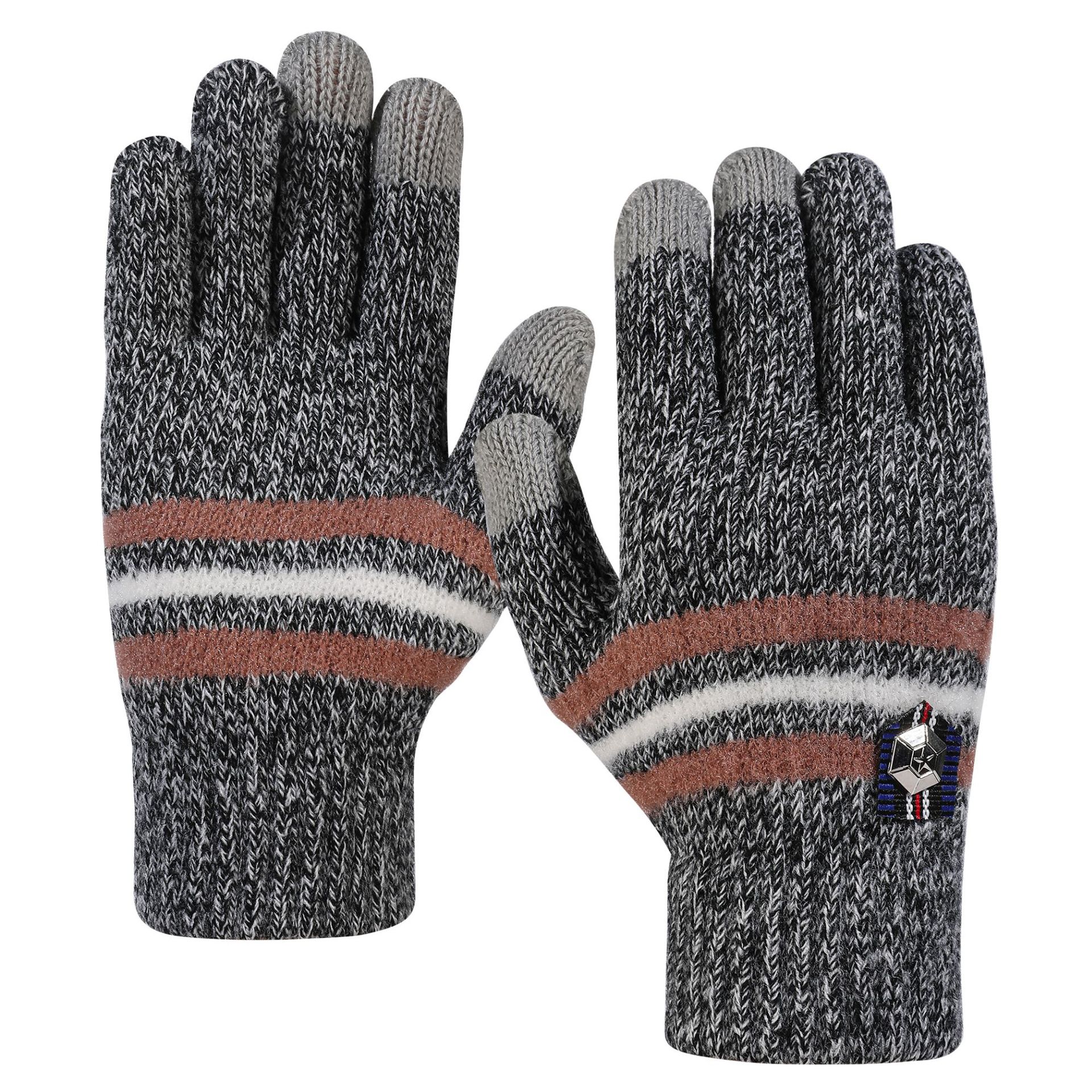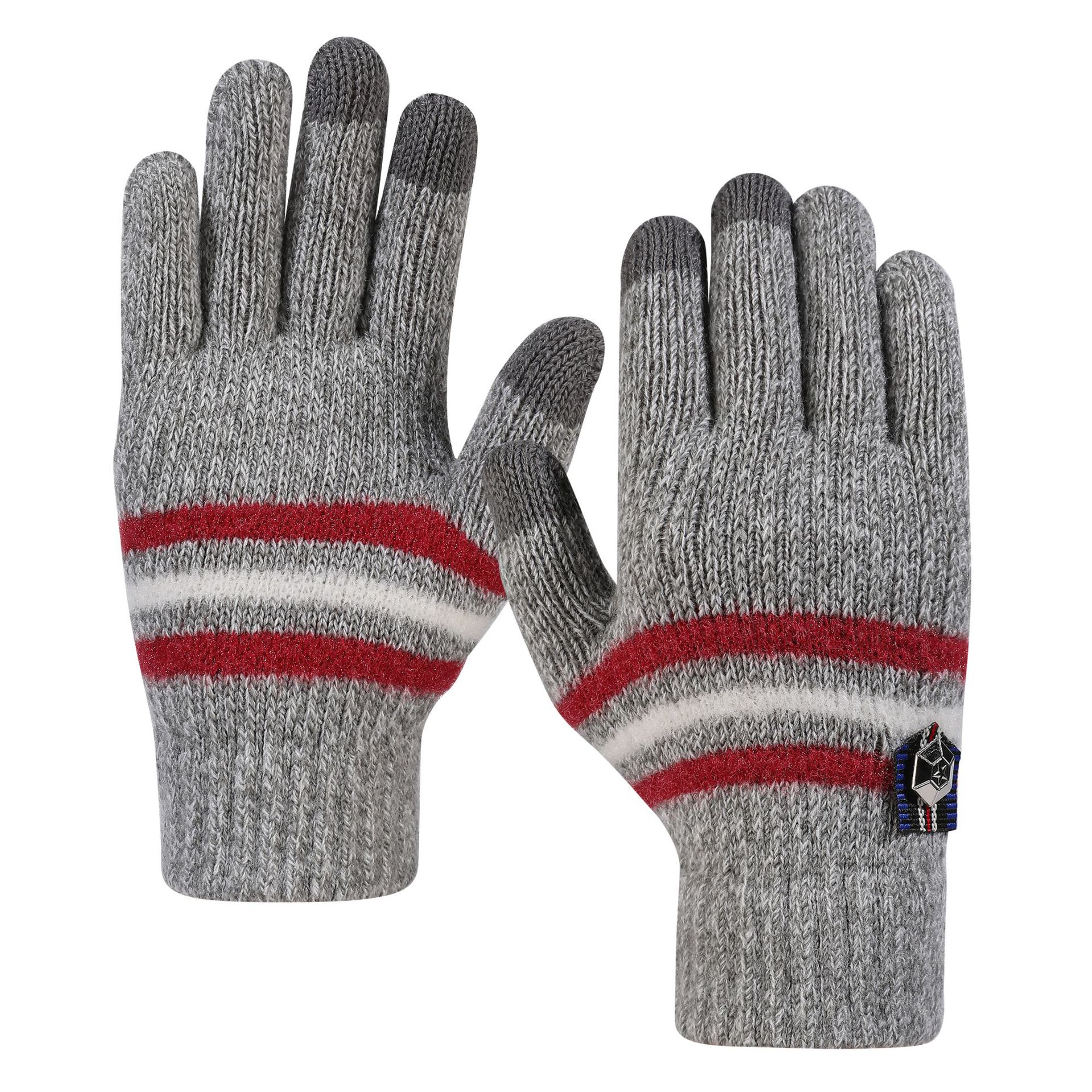공장 도매 두꺼운 기모 남성과 여성의 겨울 따뜻한 터치 스크린 승마 차가운 줄무늬 니트 울 장갑스토어 가기