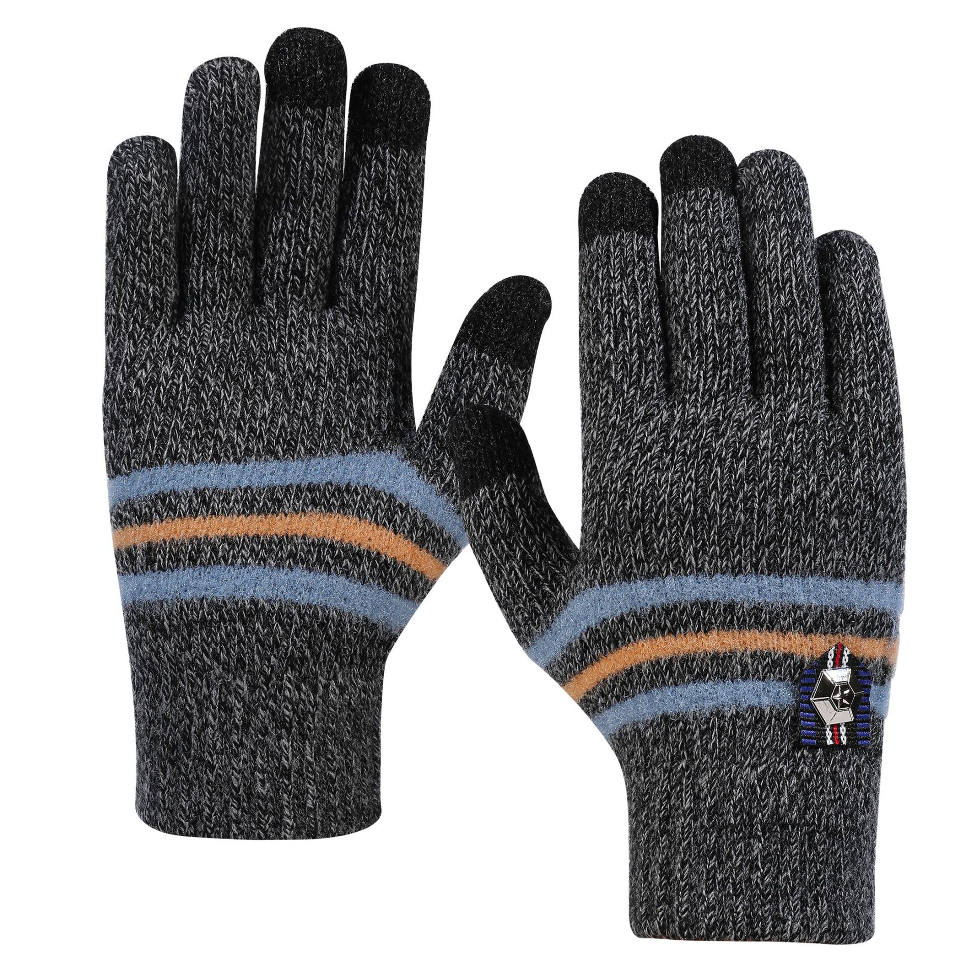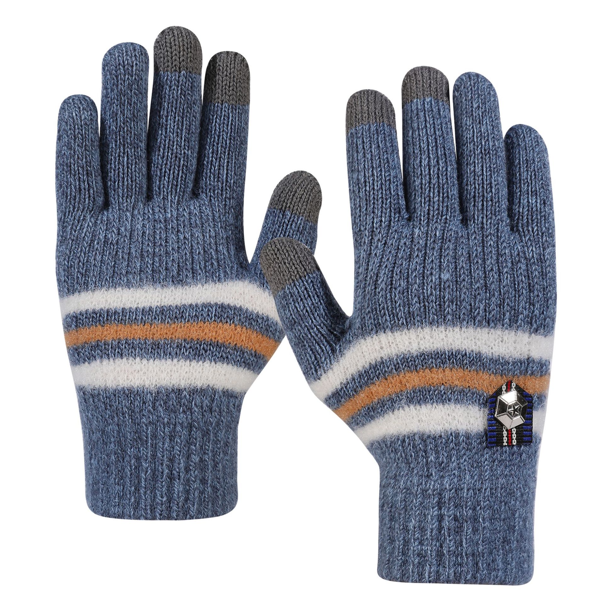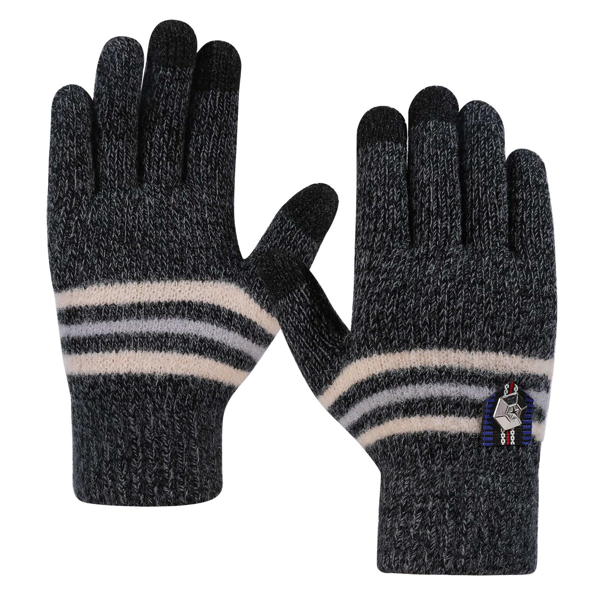 공장 도매 두꺼운 기모 남성과 여성의 겨울 따뜻한 터치 스크린 승마 차가운 줄무늬 니트 울 장갑스토어 가기