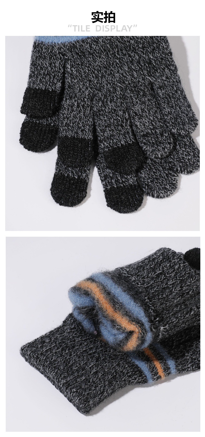 공장 도매 두꺼운 기모 남성과 여성의 겨울 따뜻한 터치 스크린 승마 차가운 줄무늬 니트 울 장갑