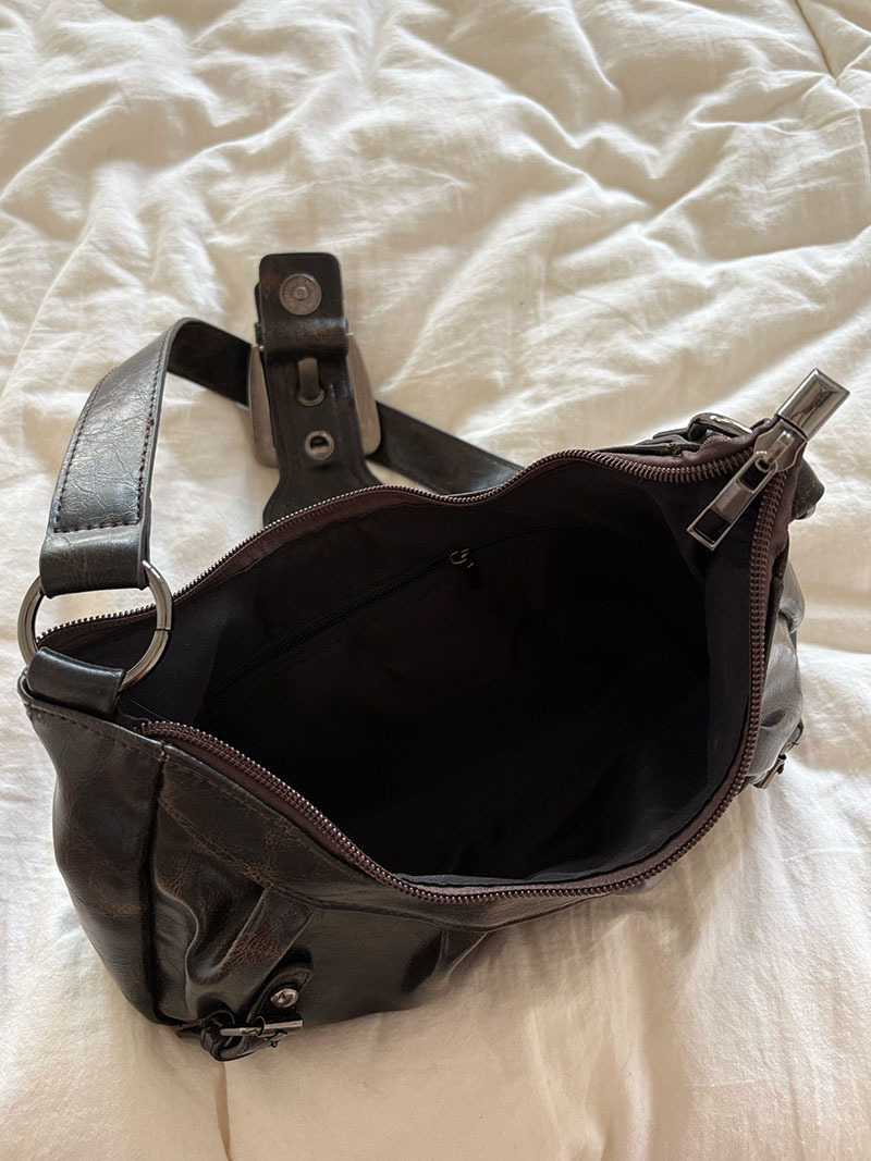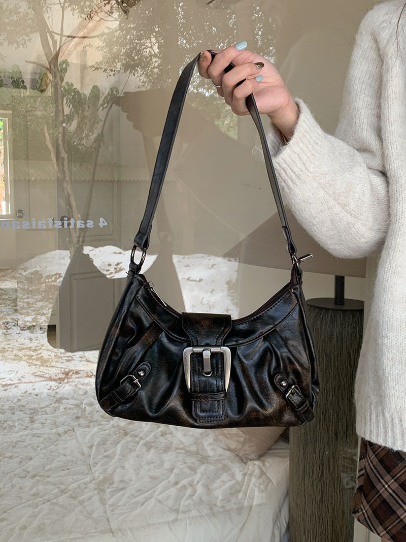 펑크 오토바이 폐기물 토양 스타일 레트로 언더암 가방 2024 새로운 프랑스 하이 엔드 올 매치 핸드 숄더 백