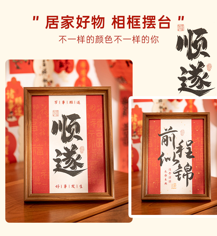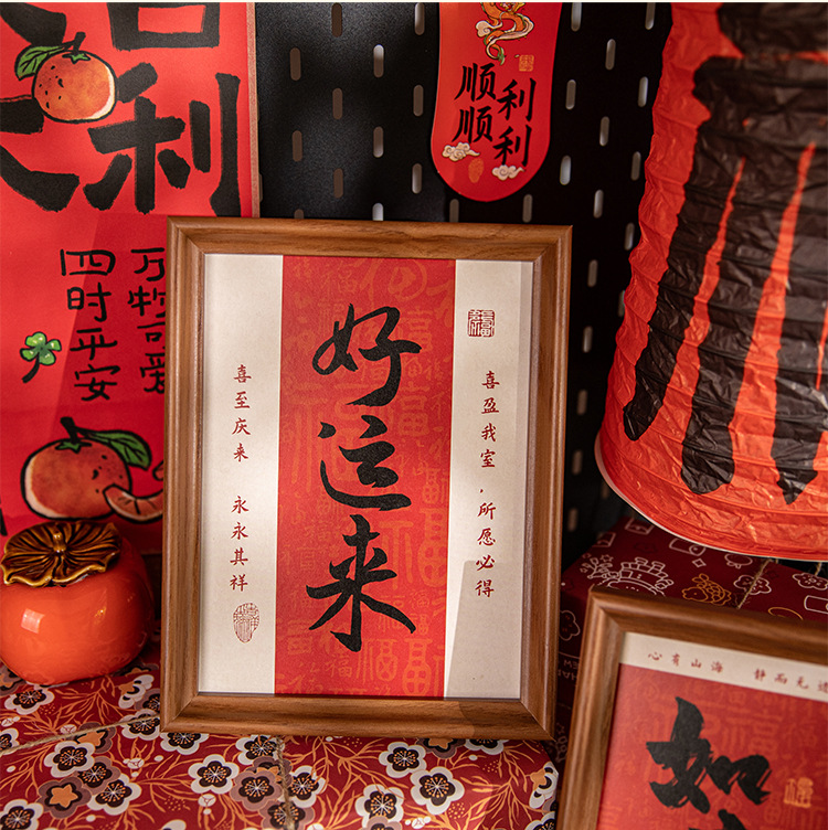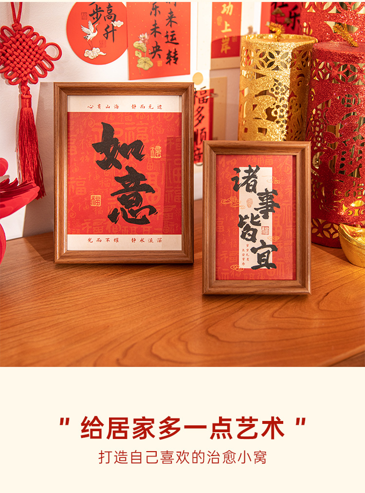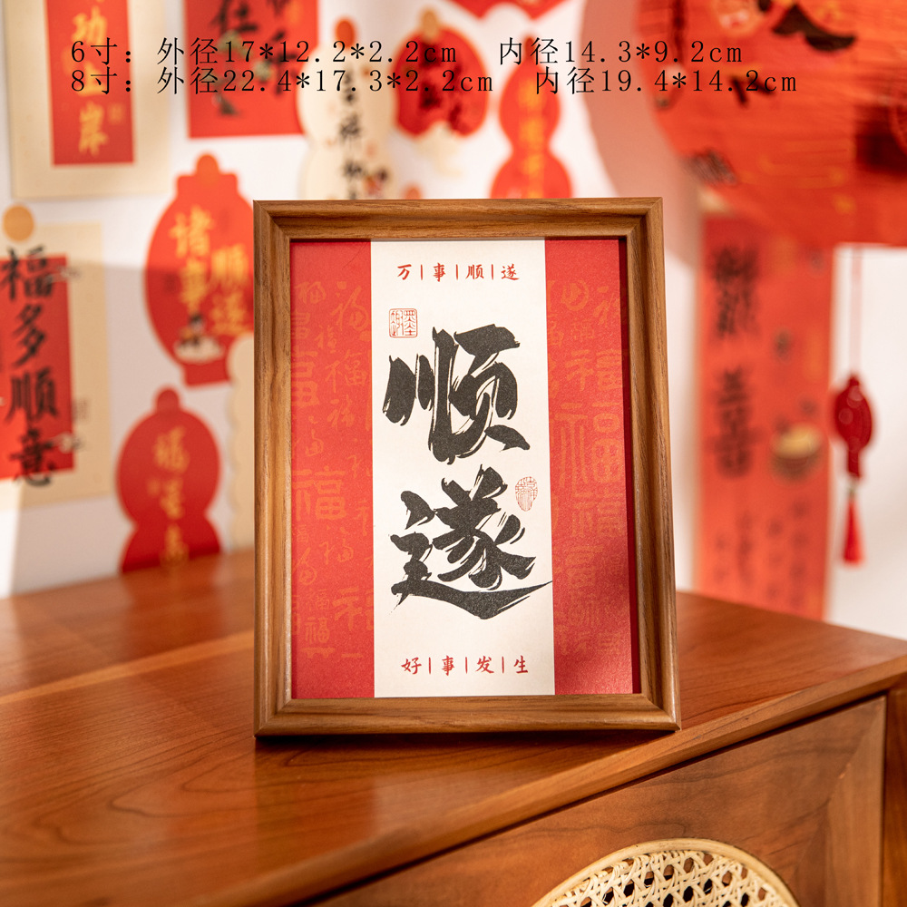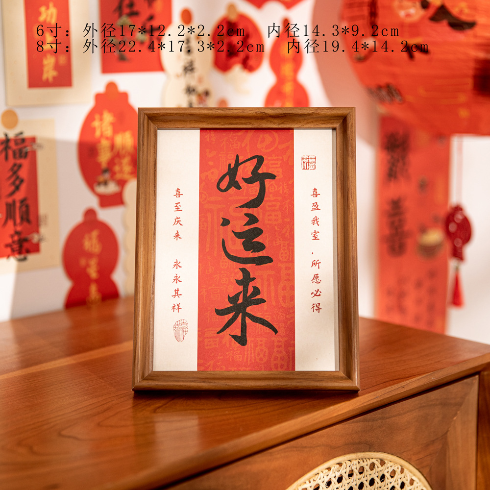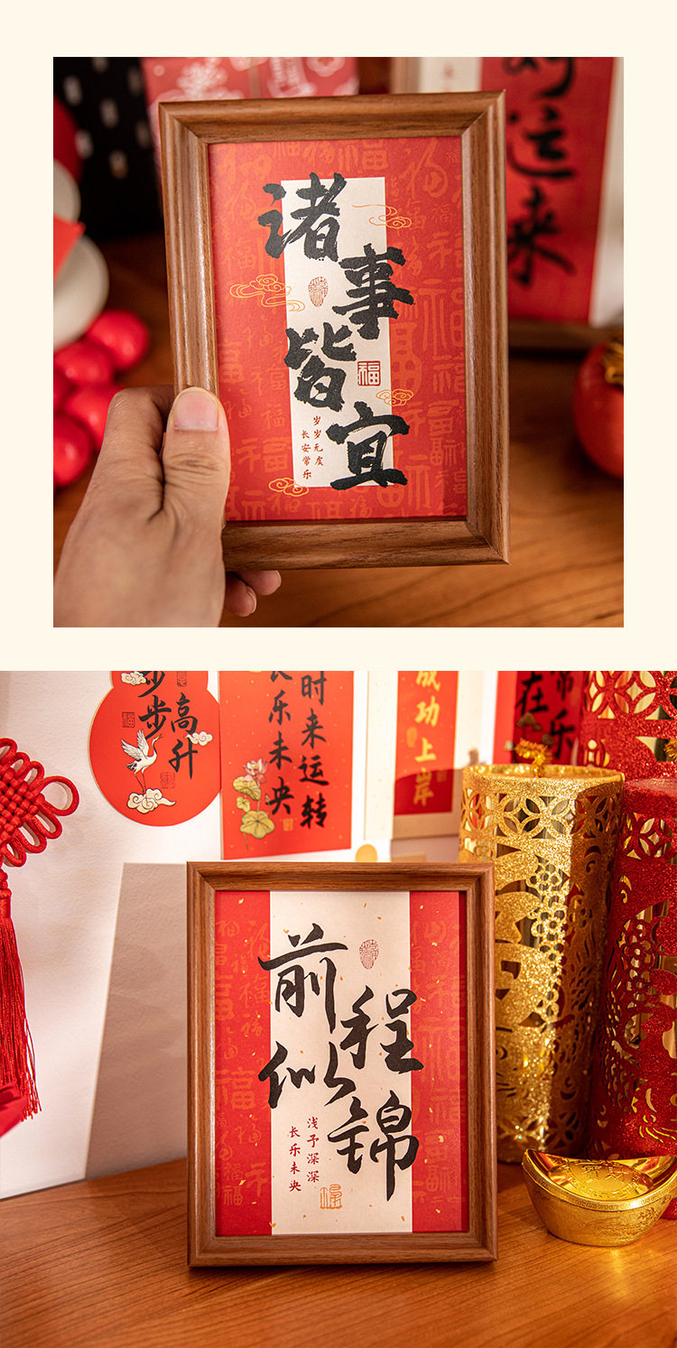 새해 사진액자 탁상 장식품, 붉은색 서예 글자 장식, 말년(마년) 장식, 현관문 장식 액자