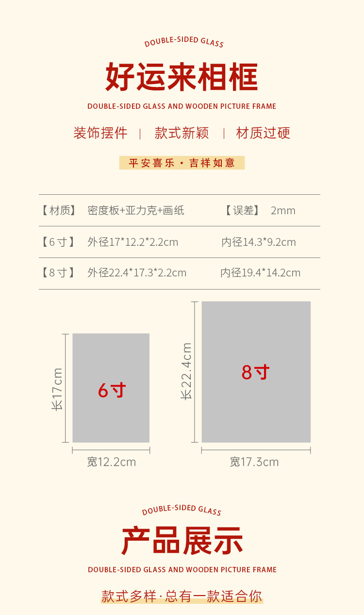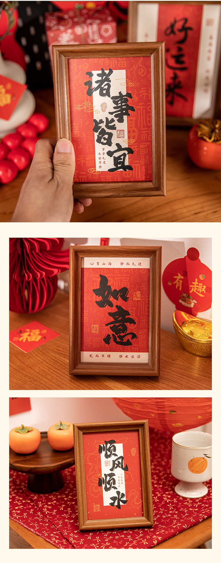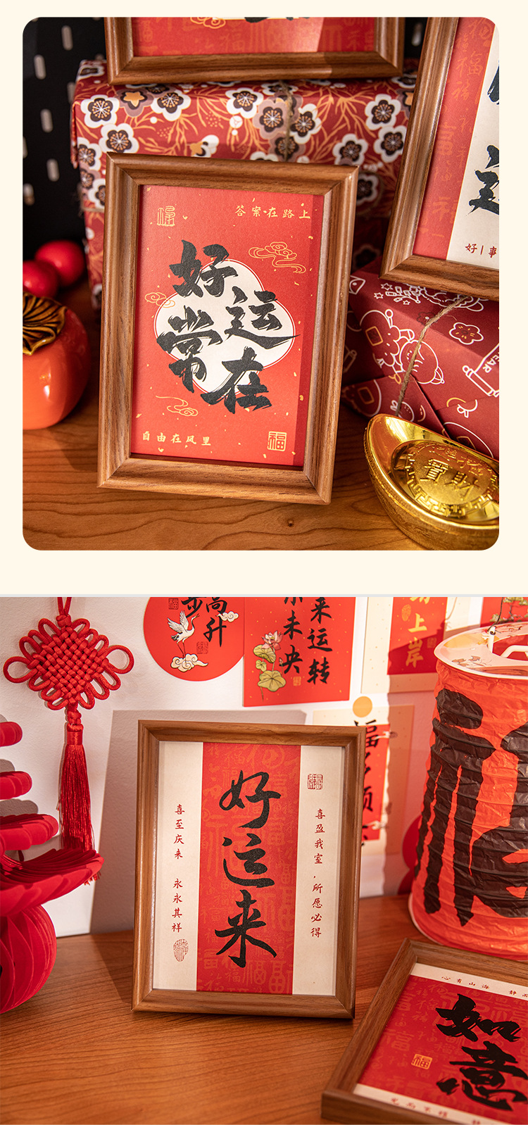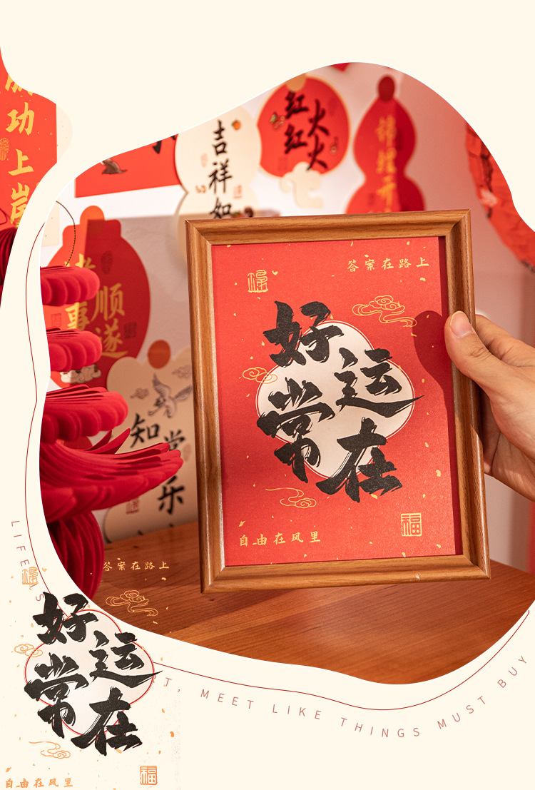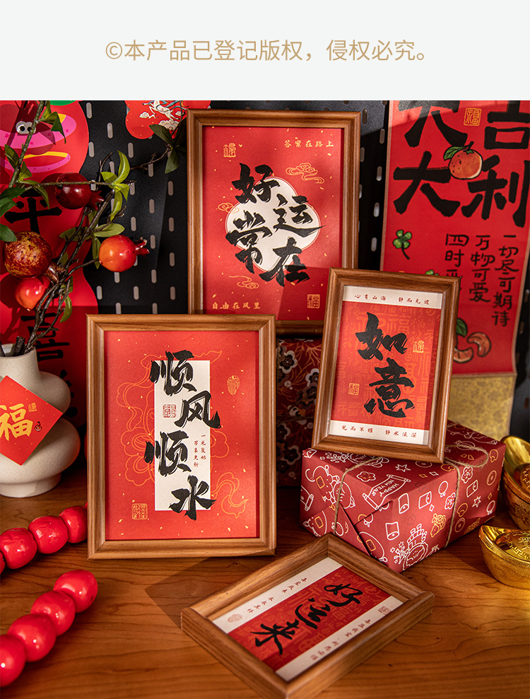 새해 사진액자 탁상 장식품, 붉은색 서예 글자 장식, 말년(마년) 장식, 현관문 장식 액자