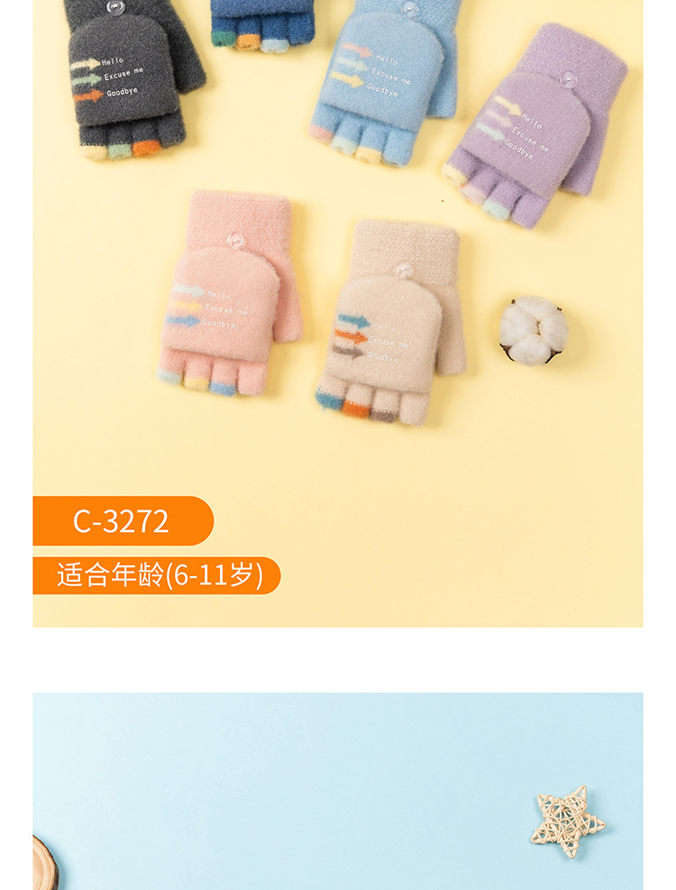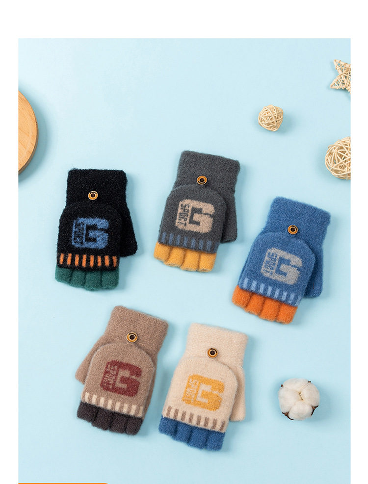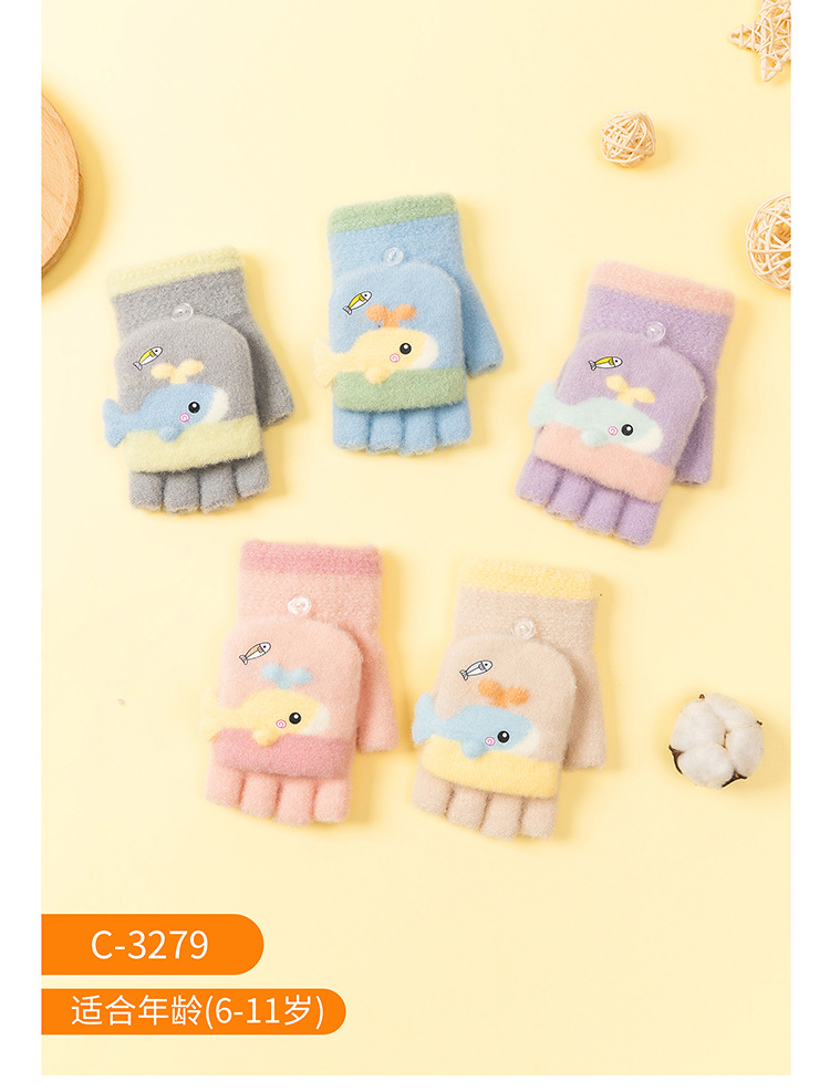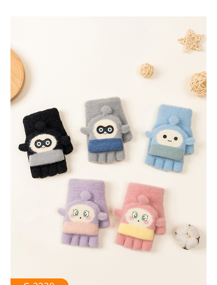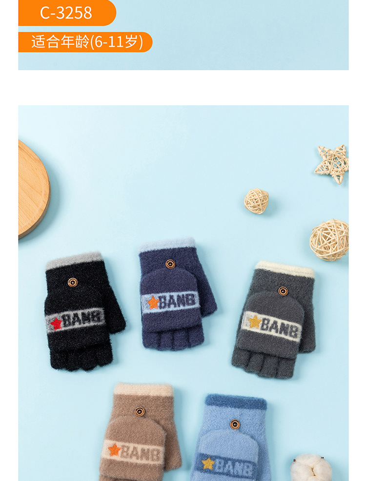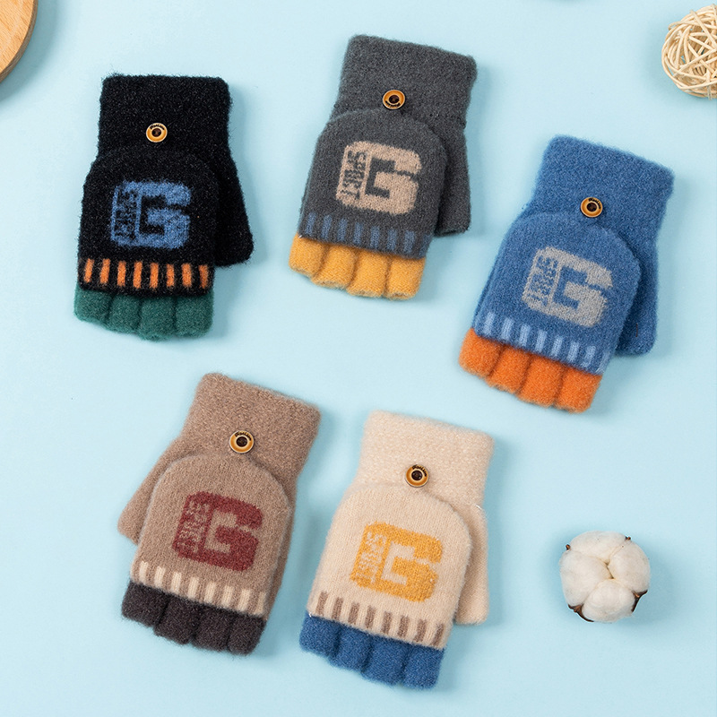 어린이 따뜻한 장갑 겨울 소년 손가락 귀여운 만화 니트 패션 학생 반 손가락 방풍 감기
