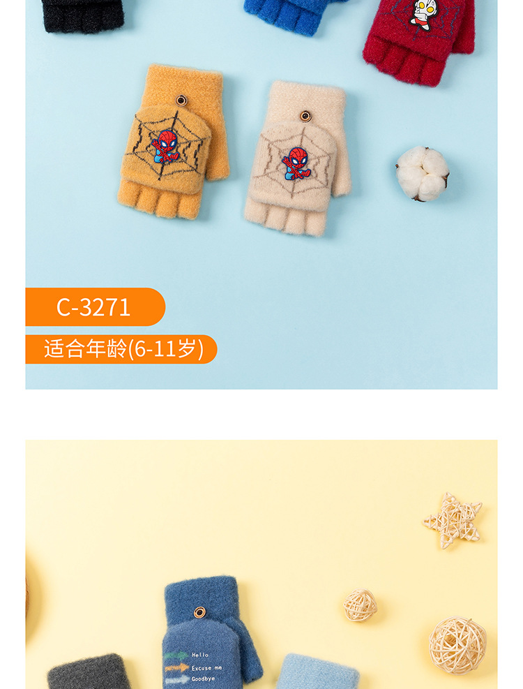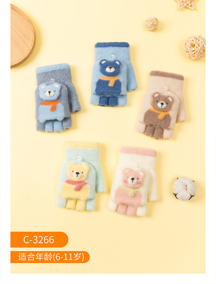 어린이 따뜻한 장갑 겨울 소년 손가락 귀여운 만화 니트 패션 학생 반 손가락 방풍 감기스토어 가기