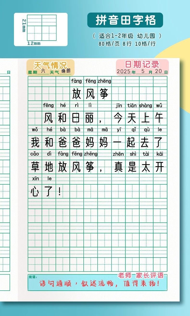 초등 학생을위한 A5 독서 노트북 저널 특별 Tian Zi Ge 추출물 읽기 32k 중국어 작곡 텍스트