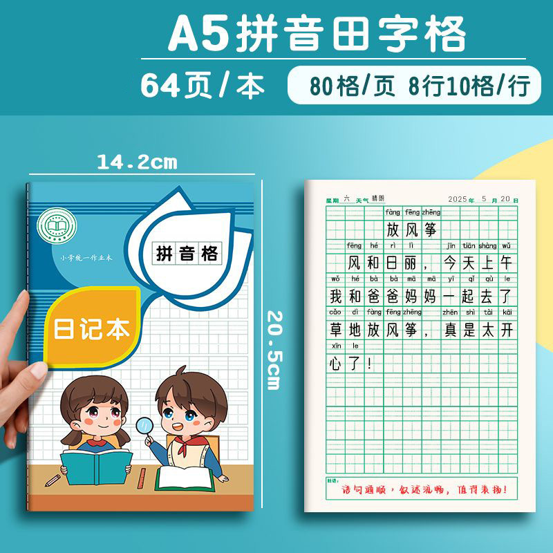 초등 학생을위한 A5 독서 노트북 저널 특별 Tian Zi Ge 추출물 읽기 32k 중국어 작곡 텍스트스토어 가기