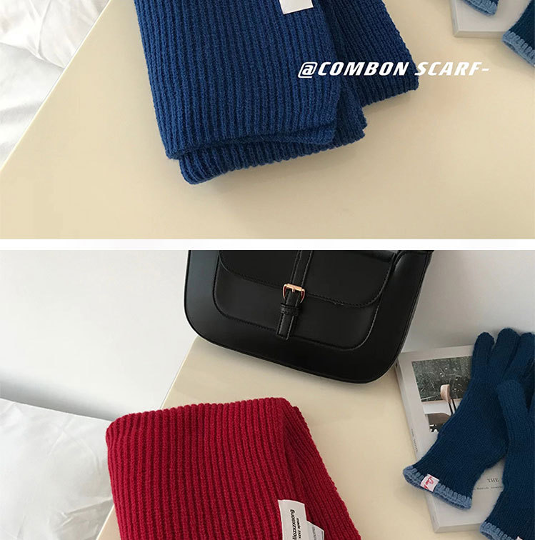 한국식 화이트 클라인 블루 니트 스카프 여자 겨울 한국식 올매치 인 학생 따뜻한 울 스카프 패션스토어 가기