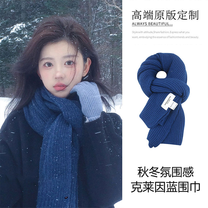 한국식 화이트 클라인 블루 니트 스카프 여자 겨울 한국식 올매치 인 학생 따뜻한 울 스카프 패션