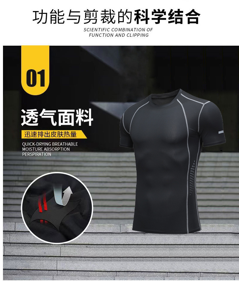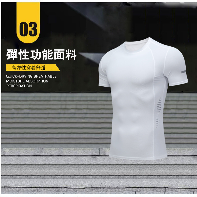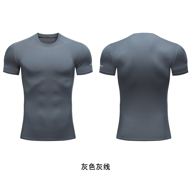 새로운 여름 남자 피트니스 반팔 피트니스 달리기 스포츠 꽉 끼는 티셔츠 가오 양 빠른 건조 땀 흡수성 반팔 셔츠스토어 가기