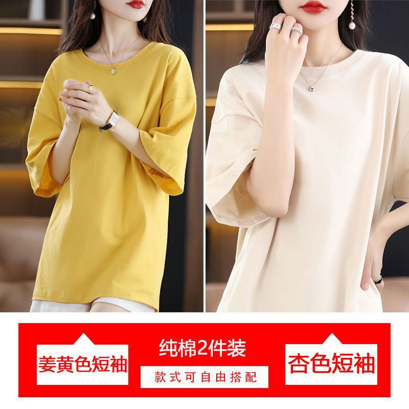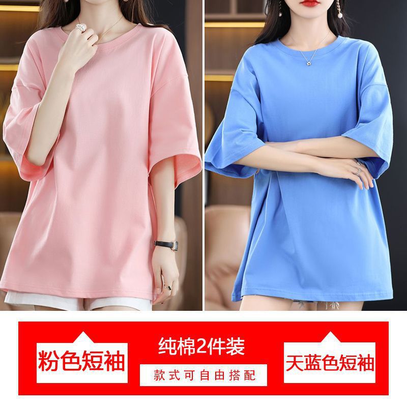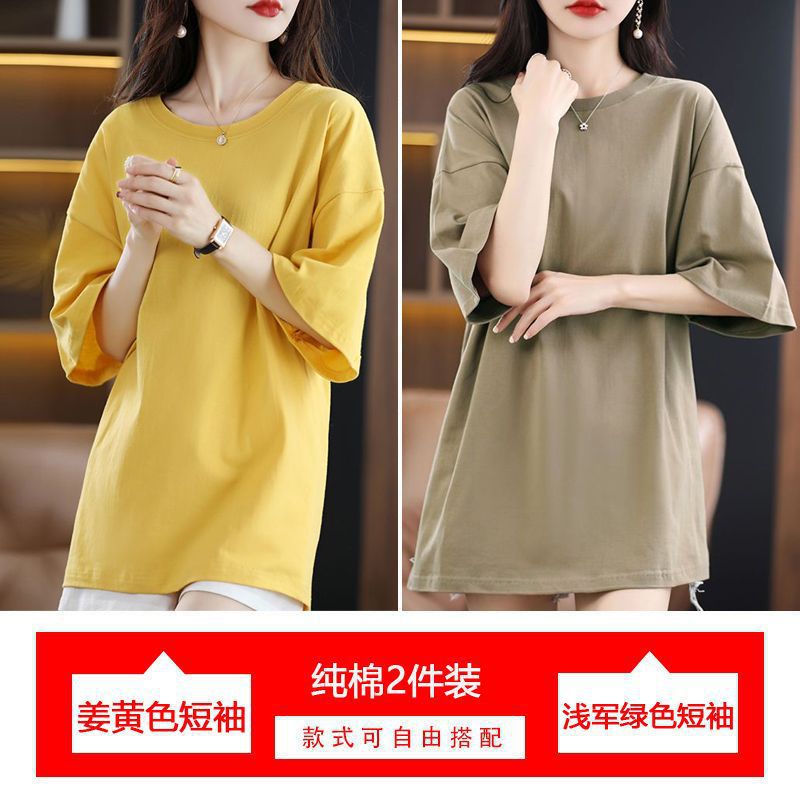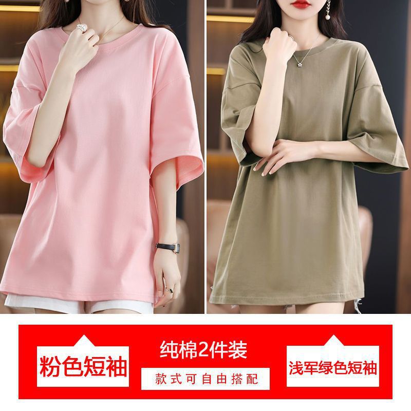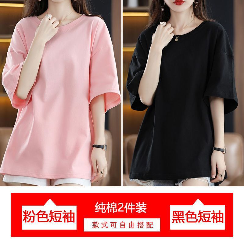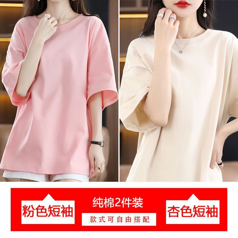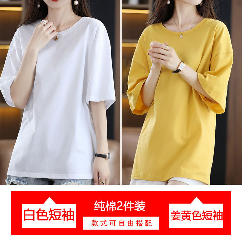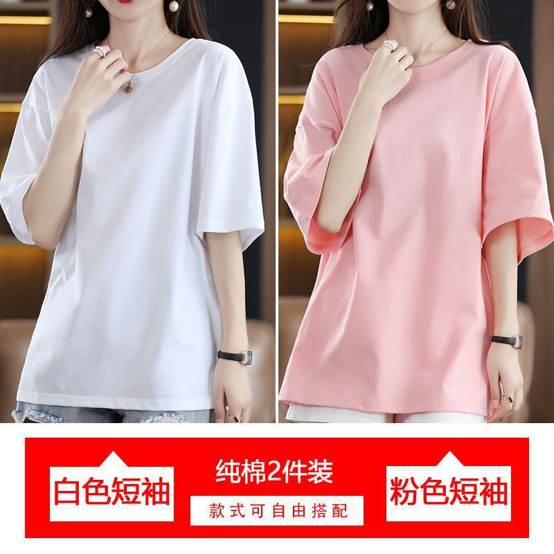 2 팩 반팔 티셔츠 여자면 여름 루즈슬림 한국식 중견 올매치 반소매 티셔츠 탑