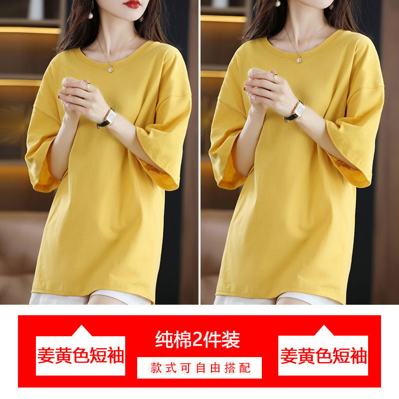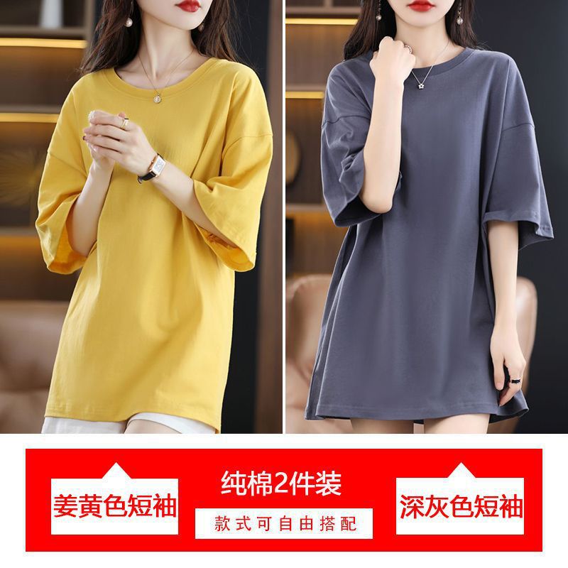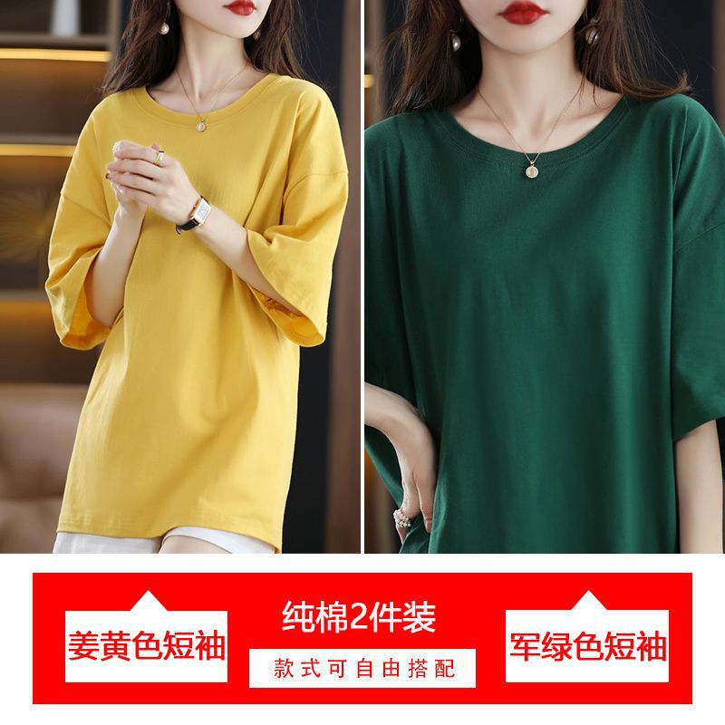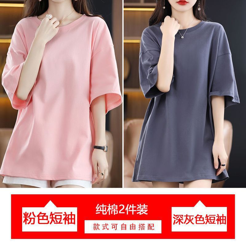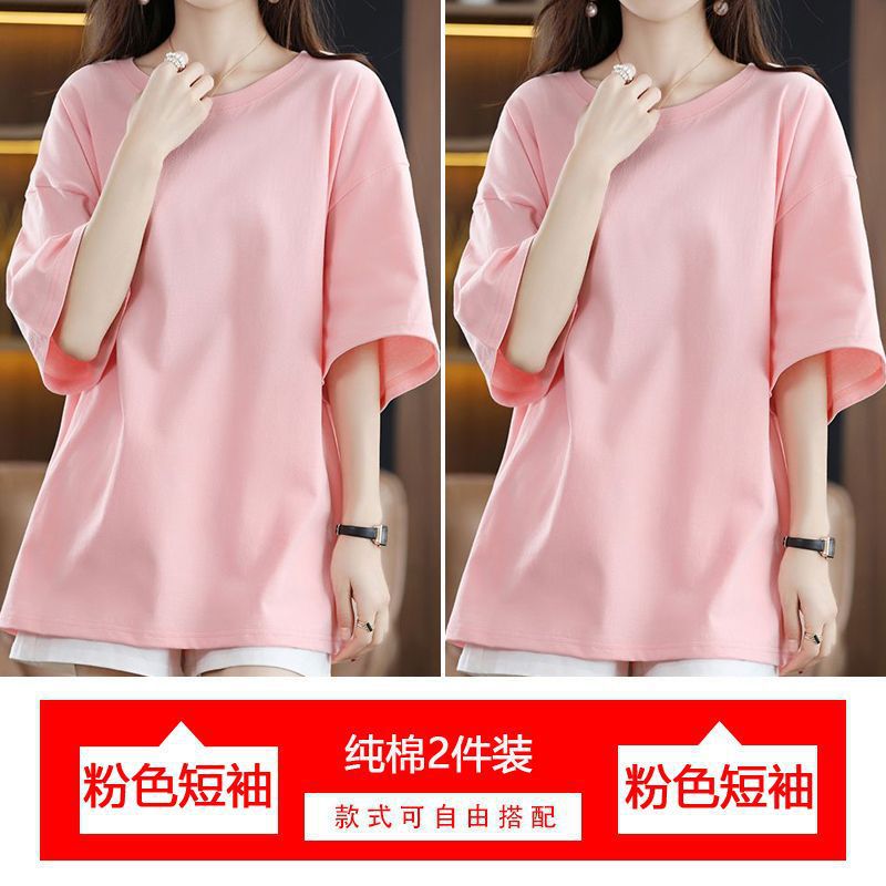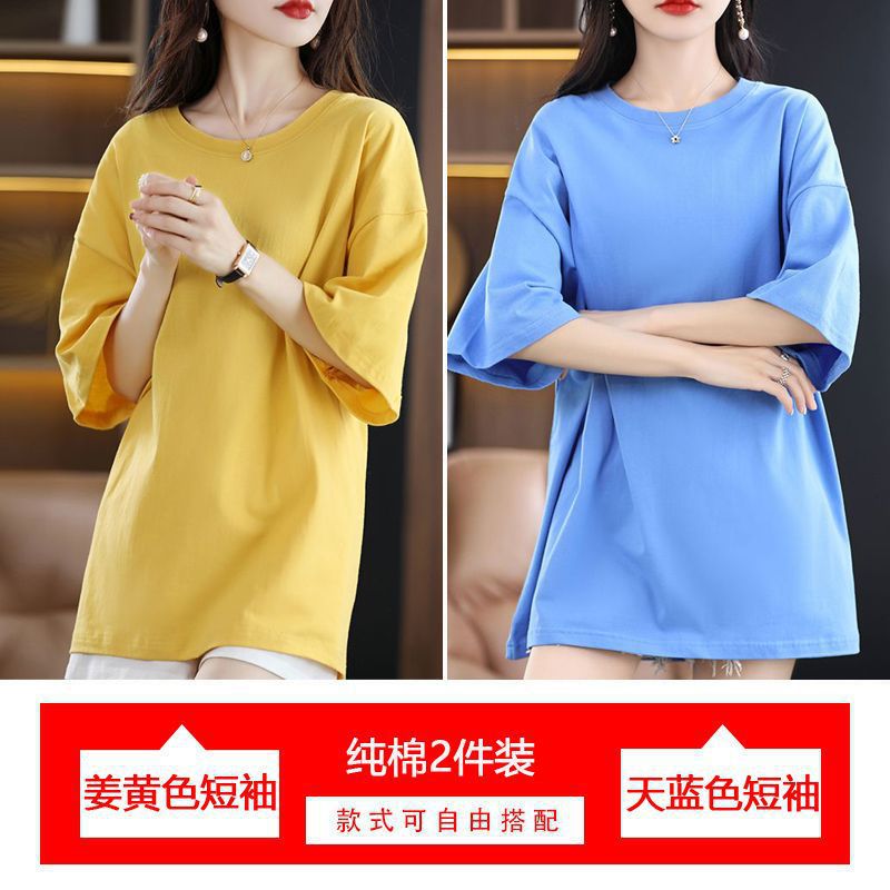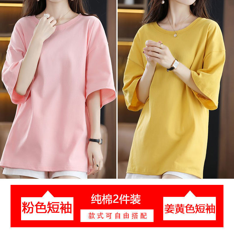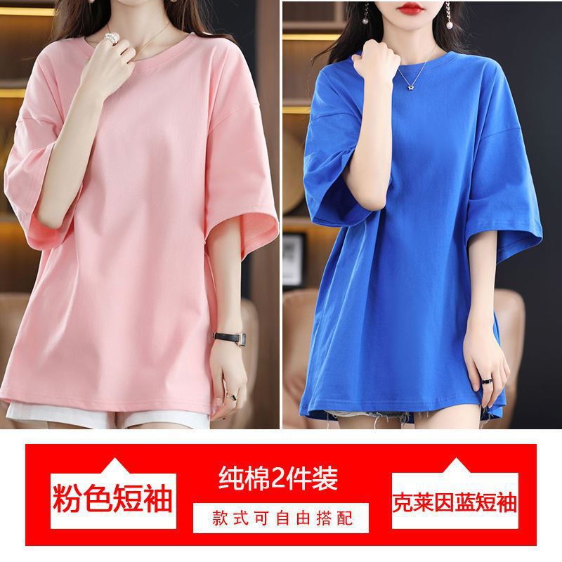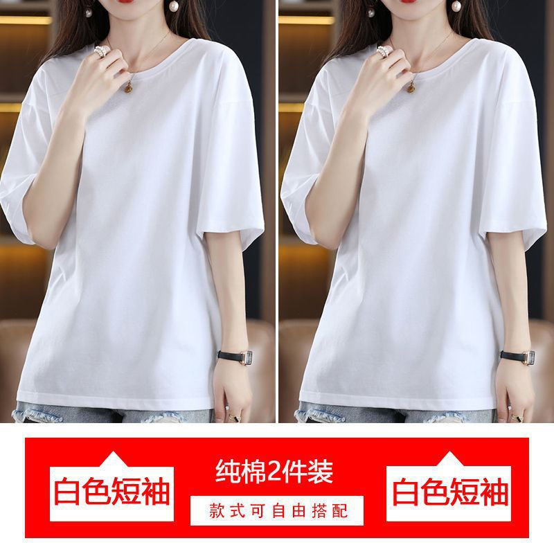 2 팩 반팔 티셔츠 여자면 여름 루즈슬림 한국식 중견 올매치 반소매 티셔츠 탑