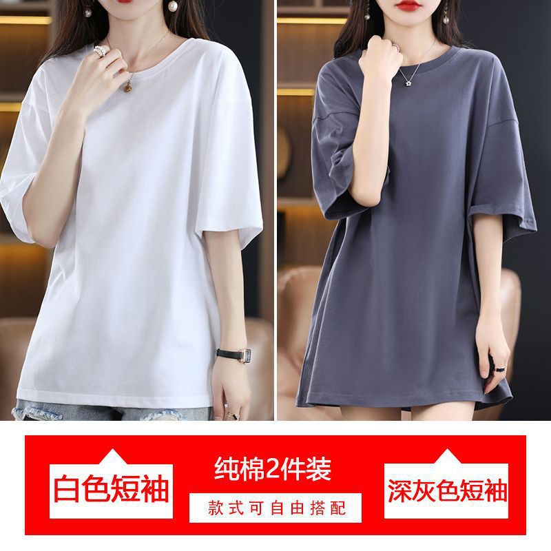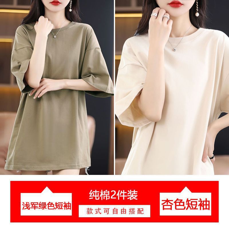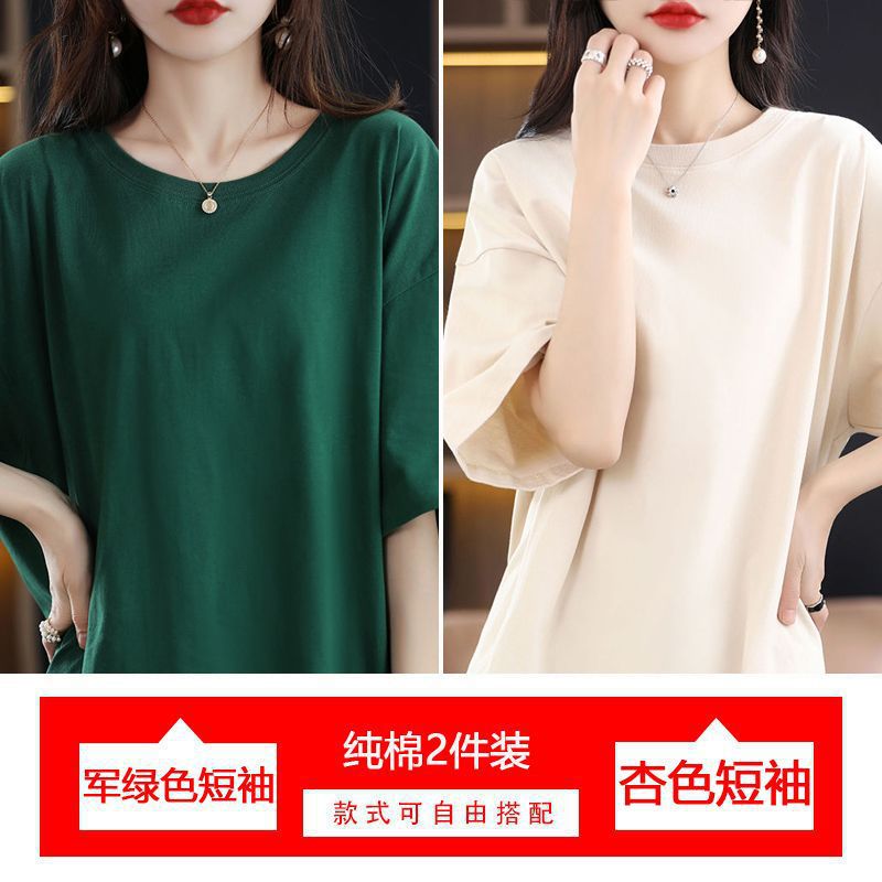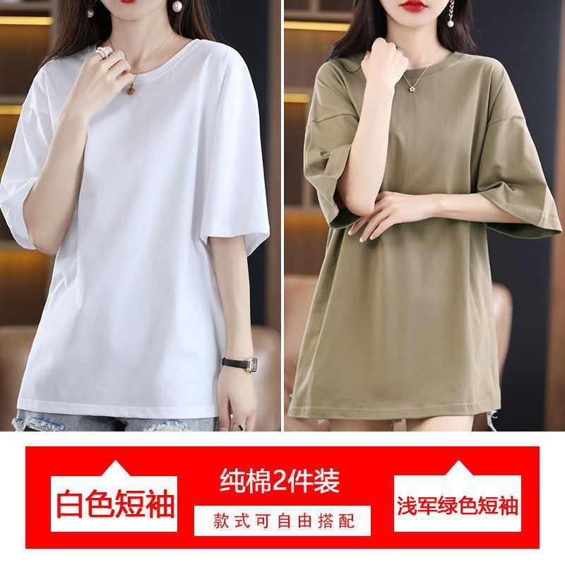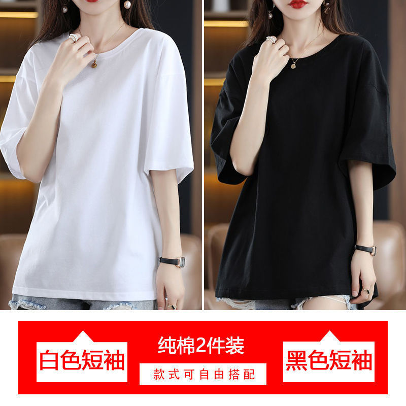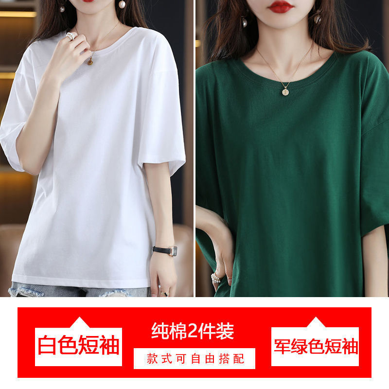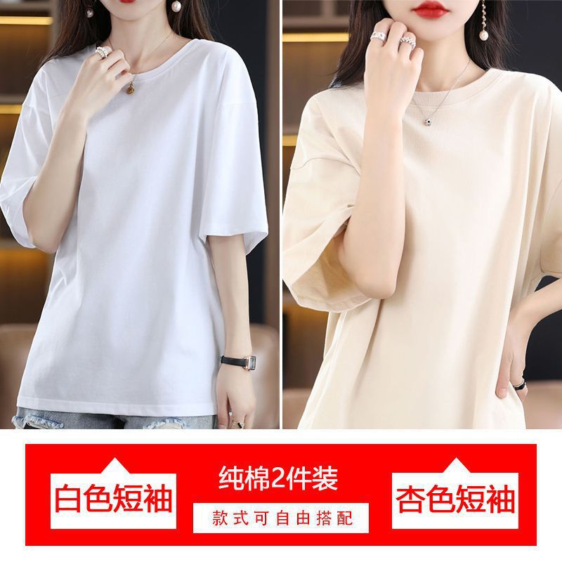 2 팩 반팔 티셔츠 여자면 여름 루즈슬림 한국식 중견 올매치 반소매 티셔츠 탑스토어 가기