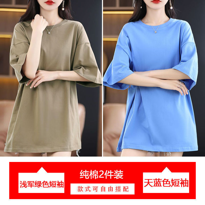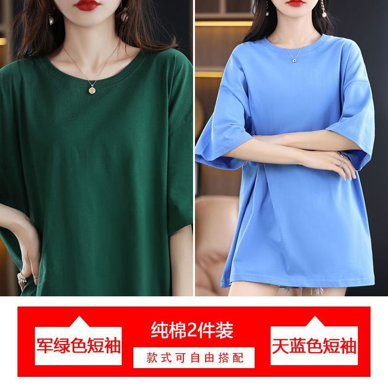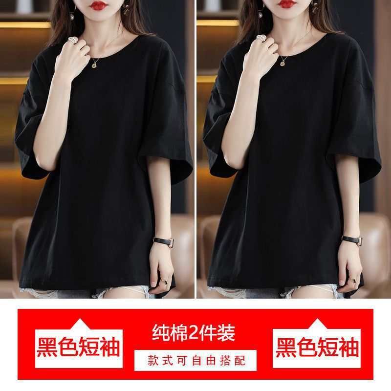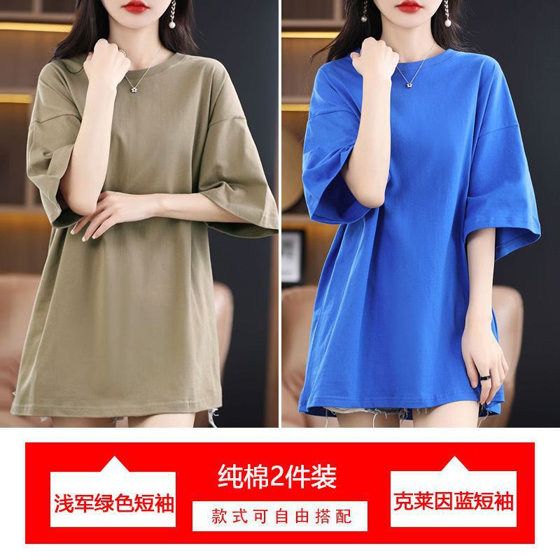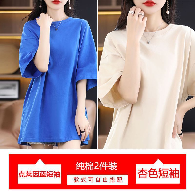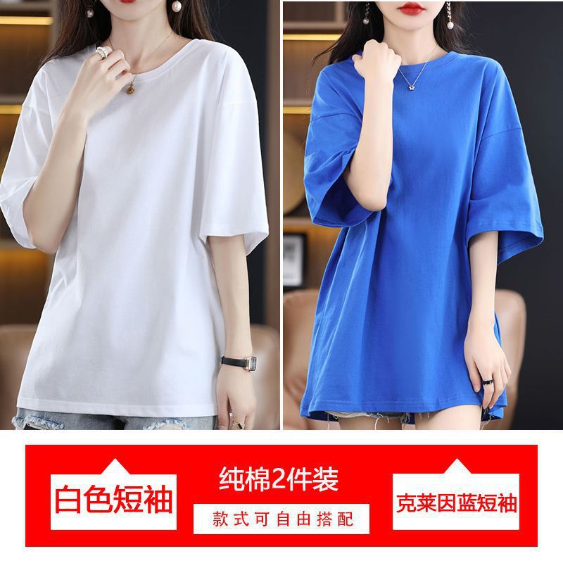 2 팩 반팔 티셔츠 여자면 여름 루즈슬림 한국식 중견 올매치 반소매 티셔츠 탑스토어 가기