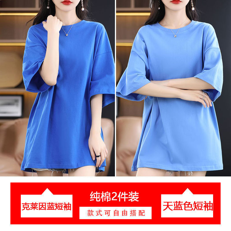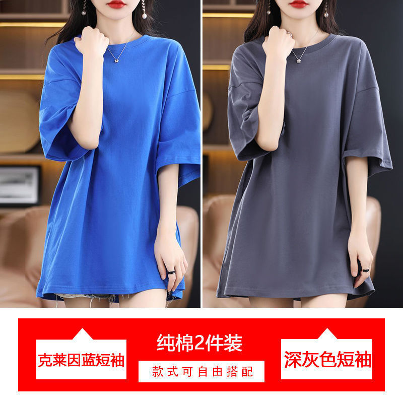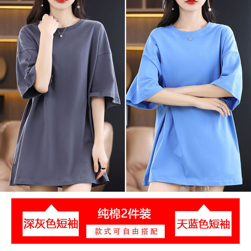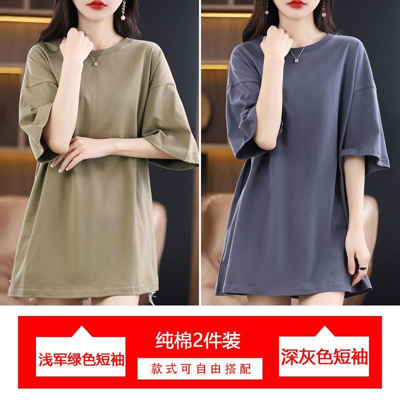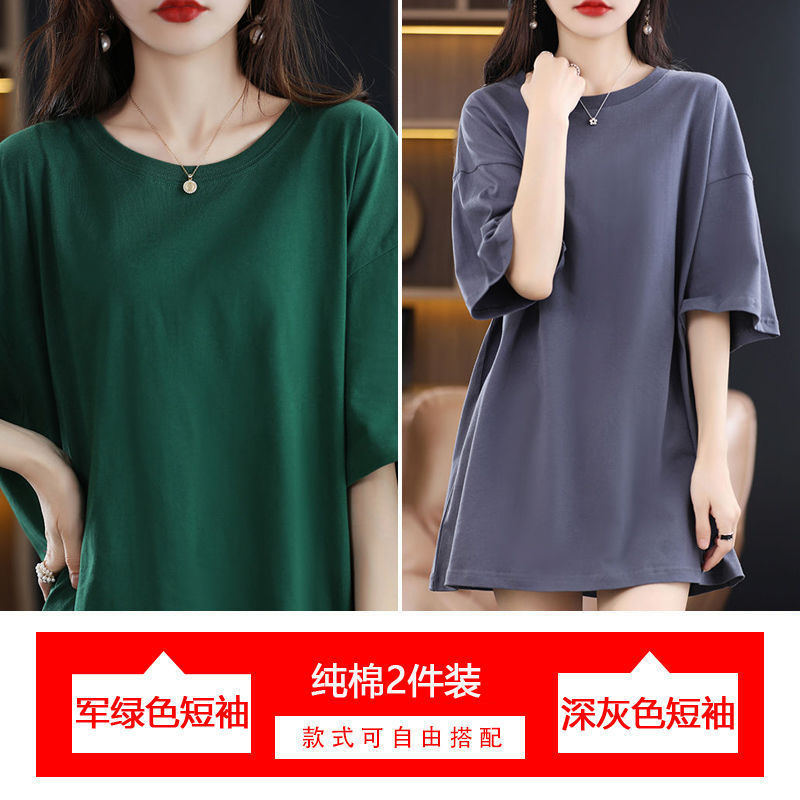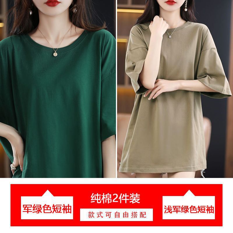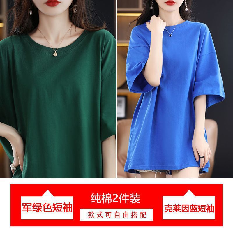 2 팩 반팔 티셔츠 여자면 여름 루즈슬림 한국식 중견 올매치 반소매 티셔츠 탑스토어 가기