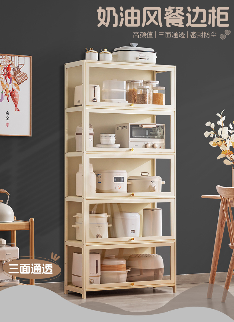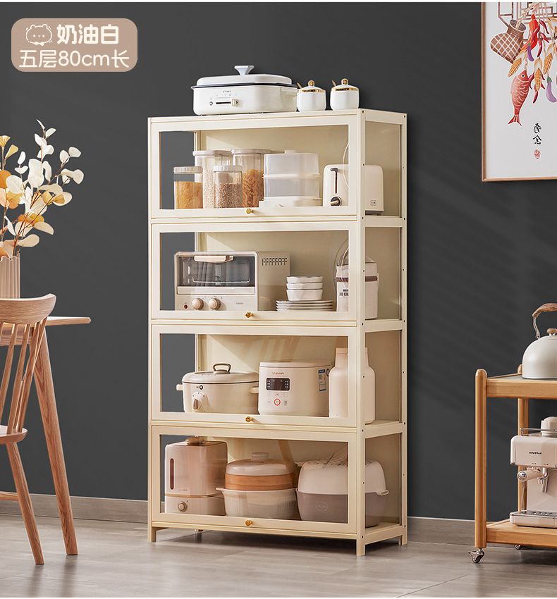 바닥 스탠딩 다층 스토리지 랙 주방 스토리지 랙 다기능 전자 레인지 컵 보드 스토리지 사이드 보드 가정용