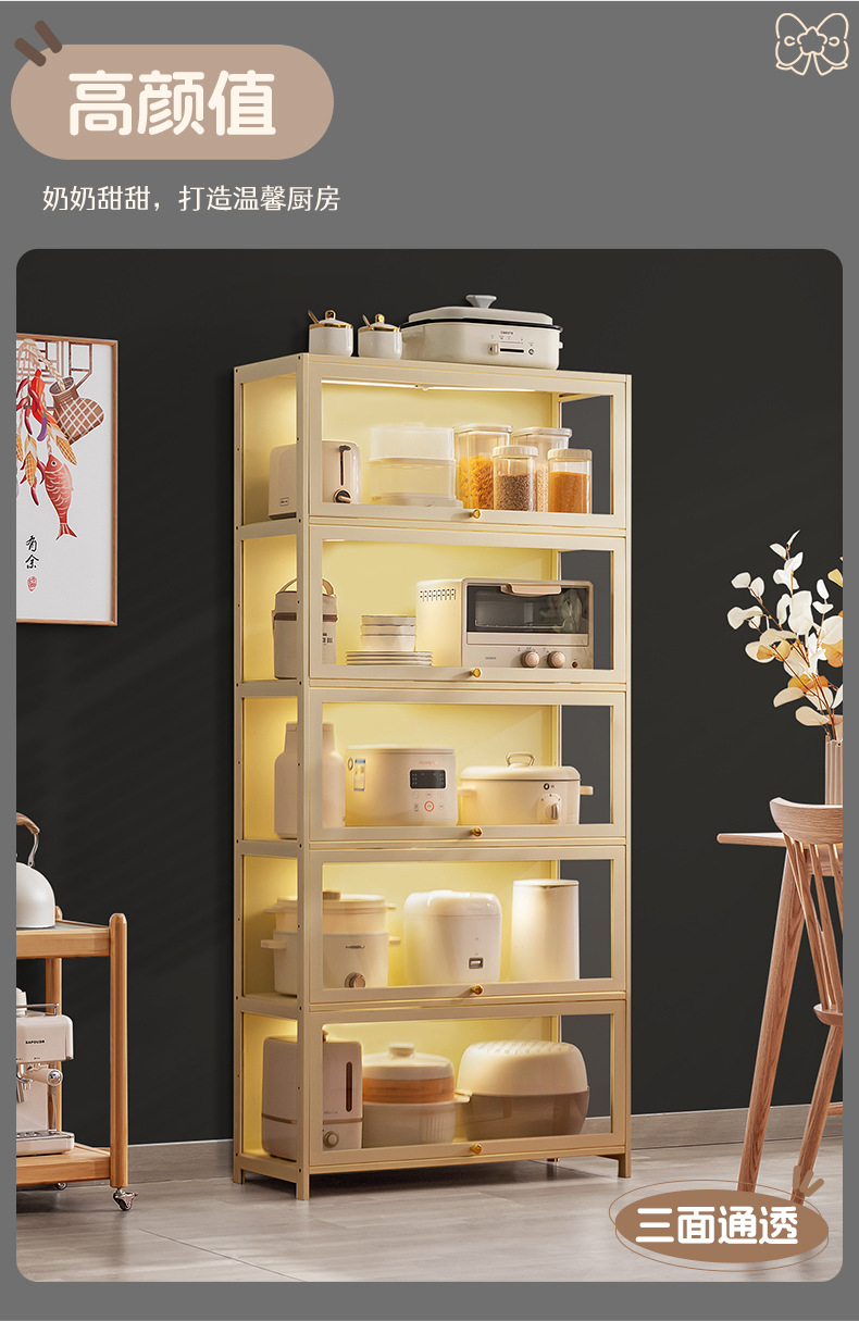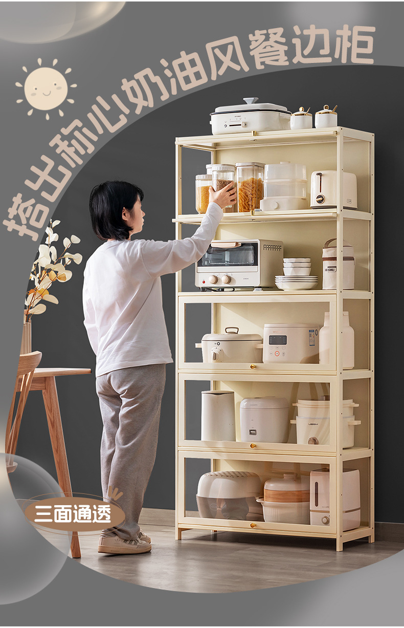 바닥 스탠딩 다층 스토리지 랙 주방 스토리지 랙 다기능 전자 레인지 컵 보드 스토리지 사이드 보드 가정용스토어 가기