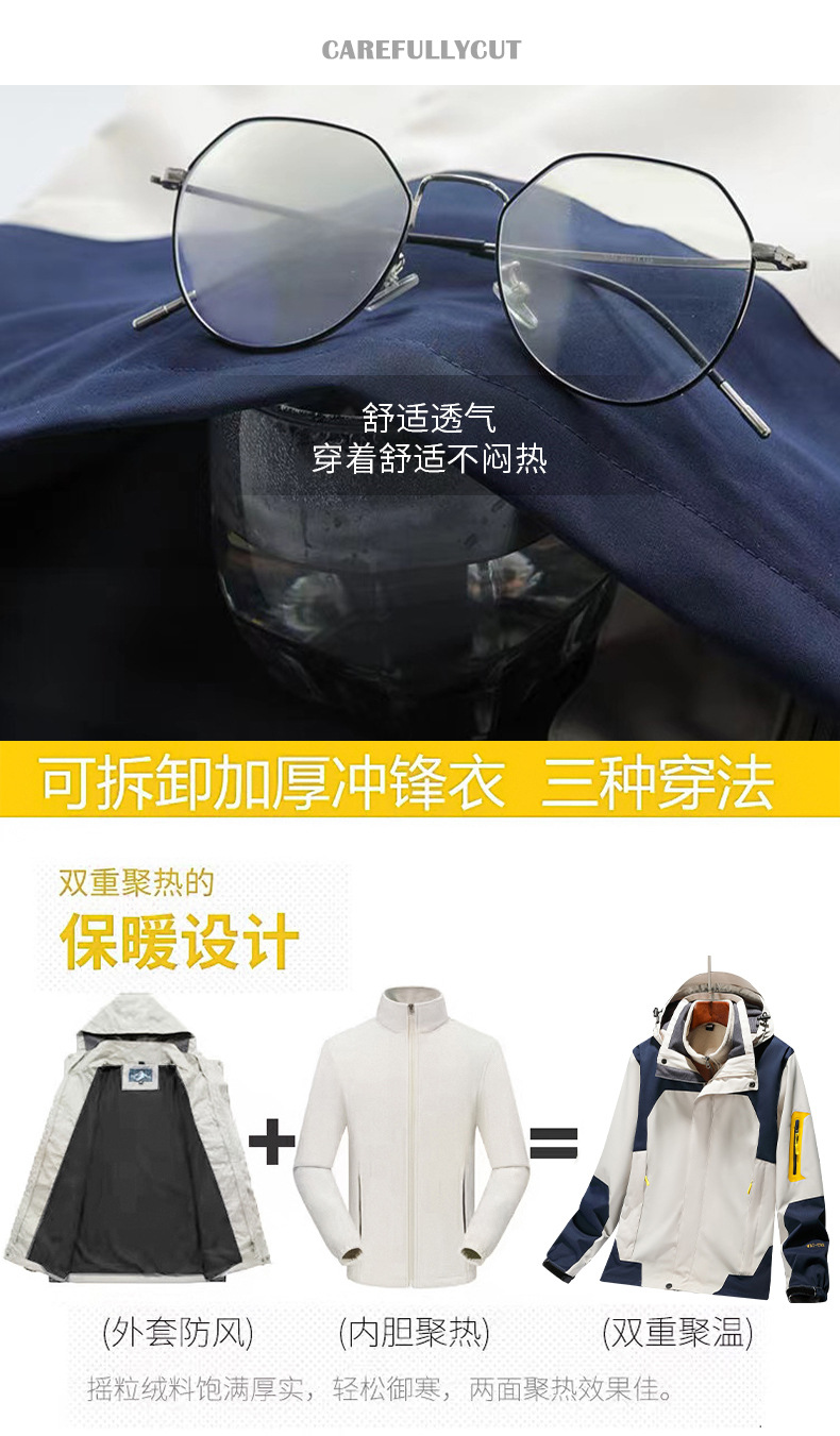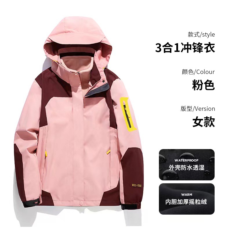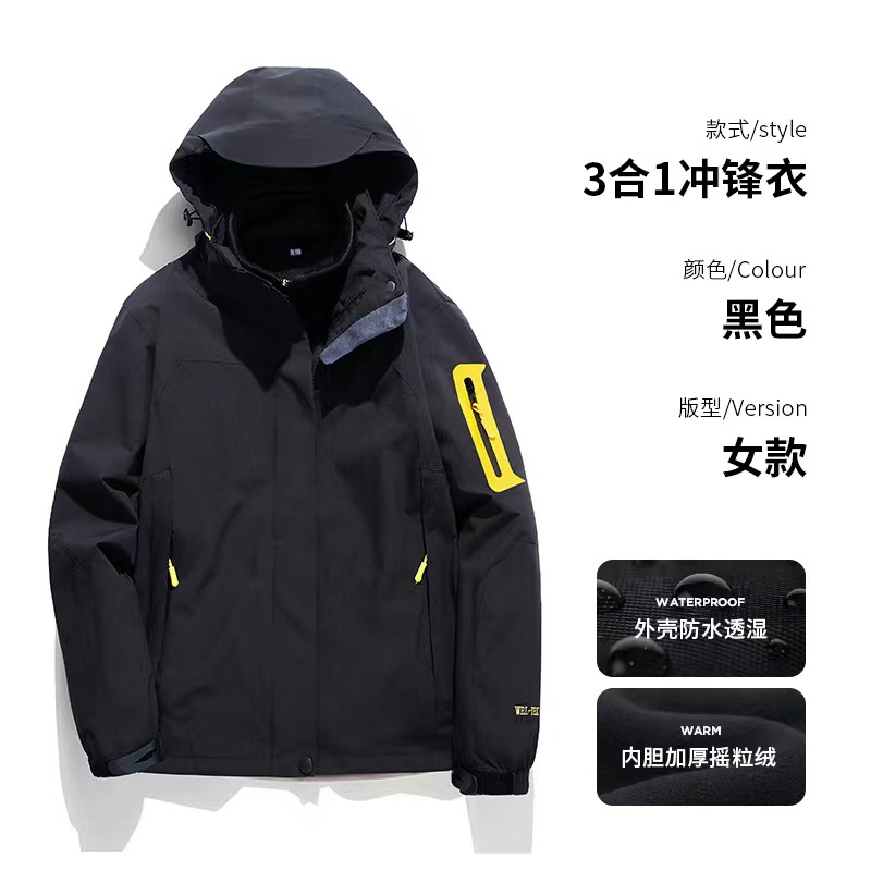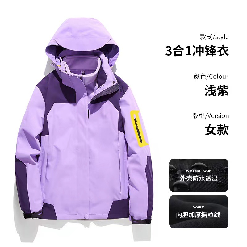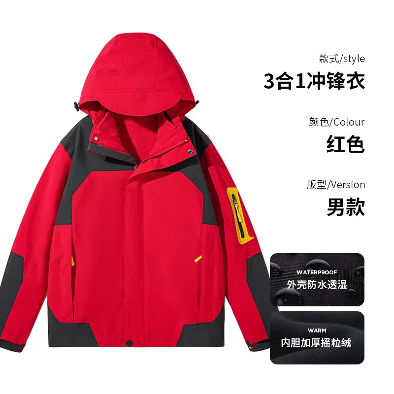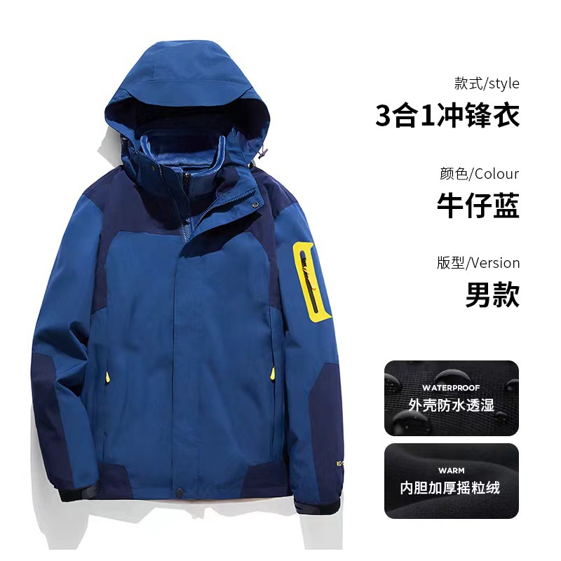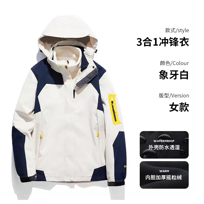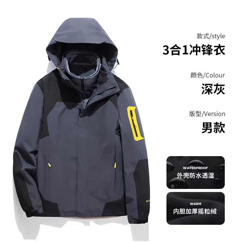 남녀공용 3-in-1 0.05kg 피스 세트, 탈부착 가능한 내부 라이너, 방풍, 방수, 보온 기능을 갖춘 아웃도어 등산 재킷스토어 가기