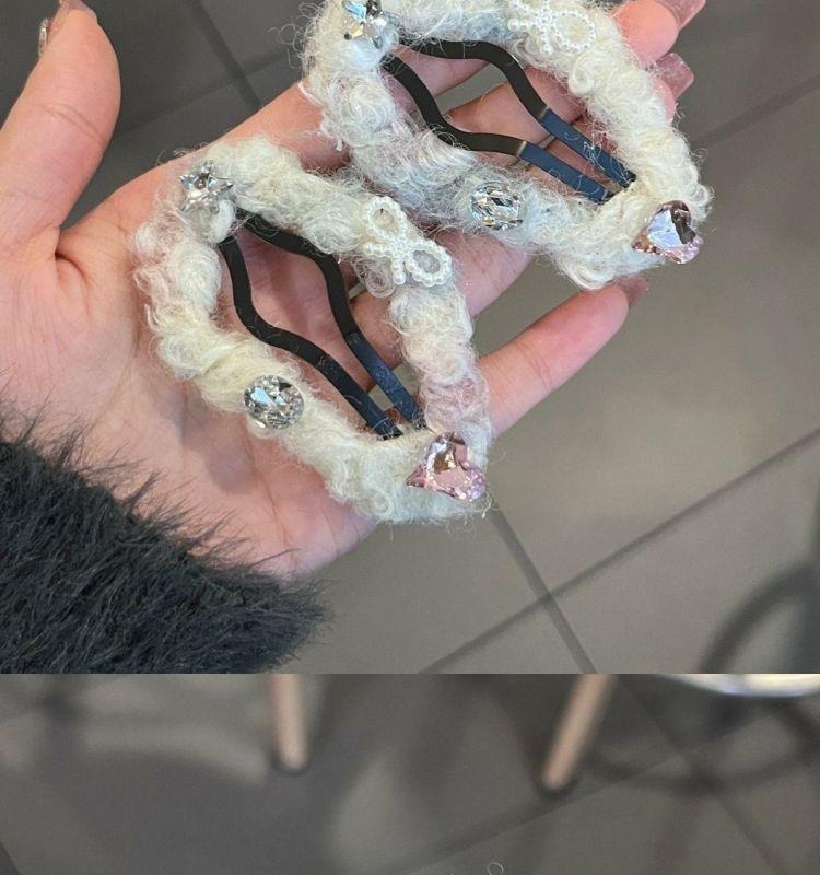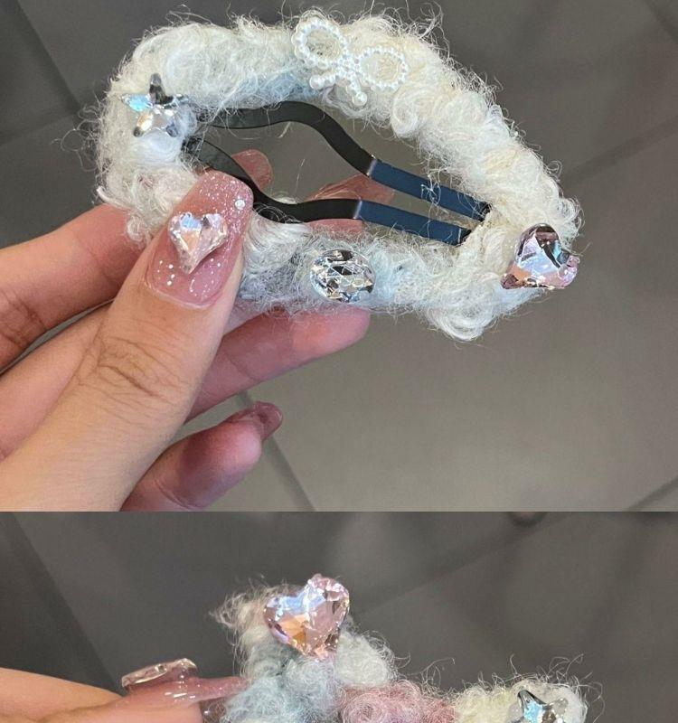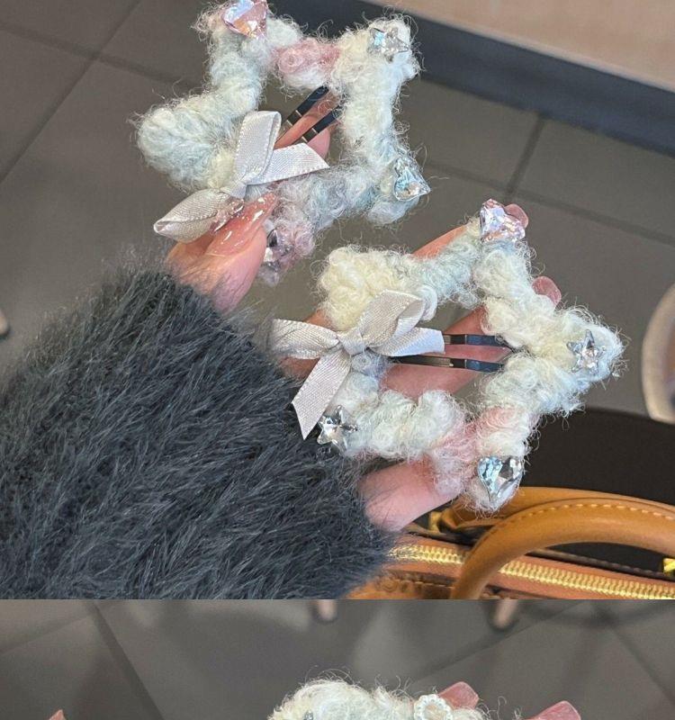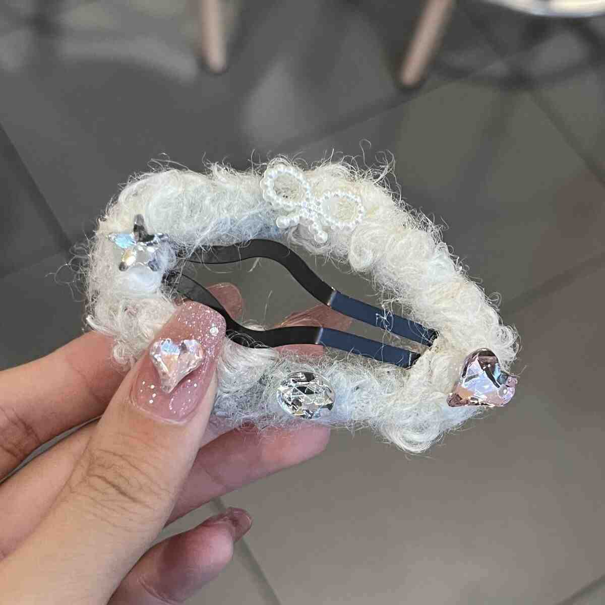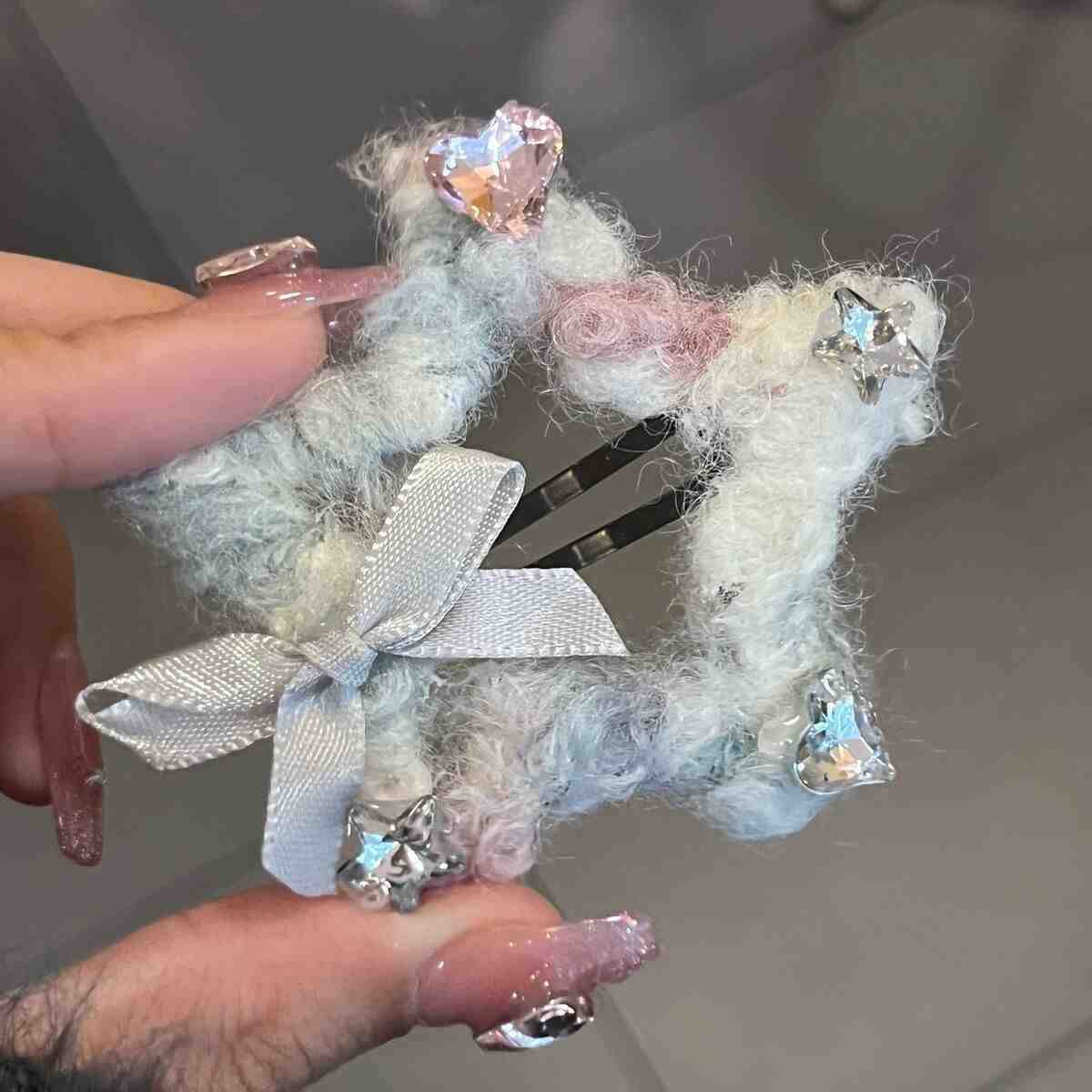 귀여운 헤일로 울 스타 라인스톤 활 머리핀 봉제 방이들 클립 BB 클립 헤어핀 가을과 겨울 사이드 클립