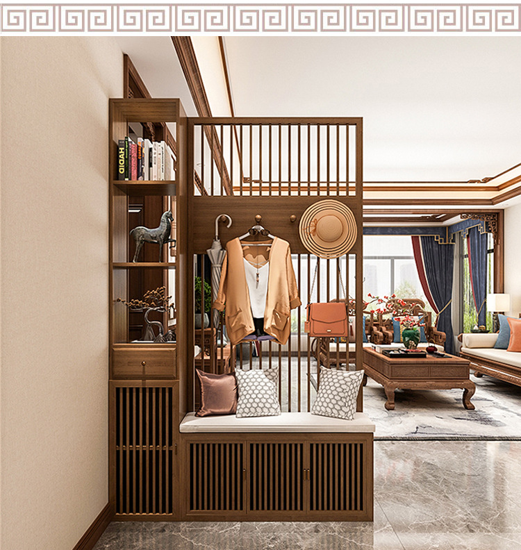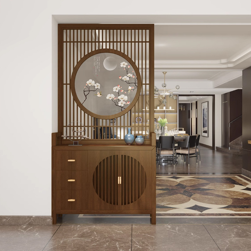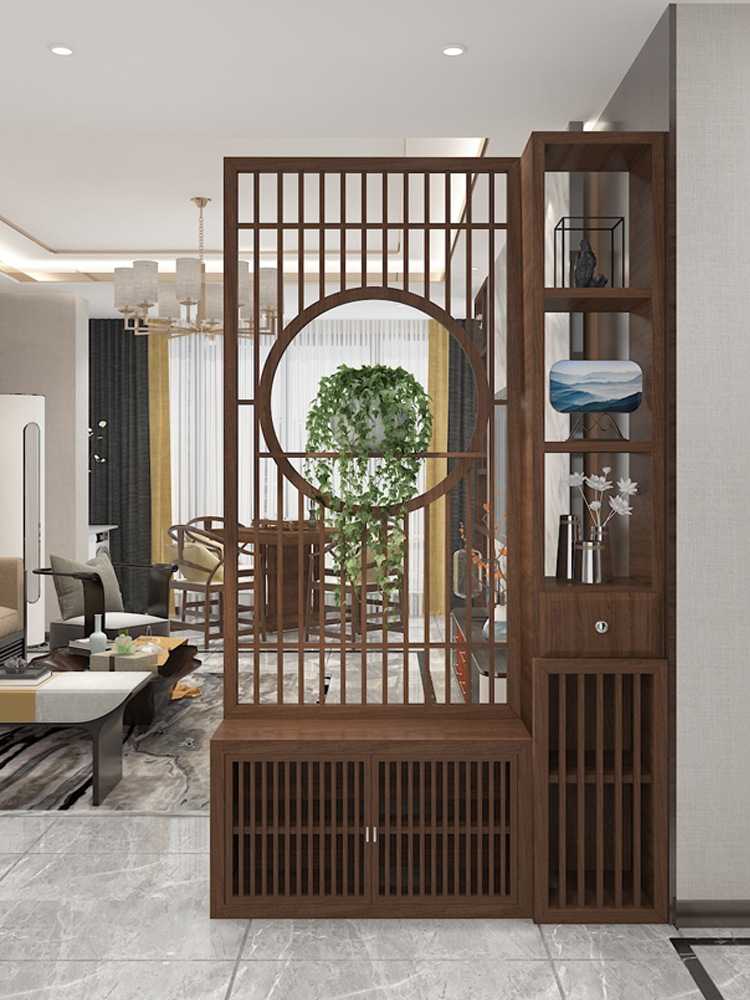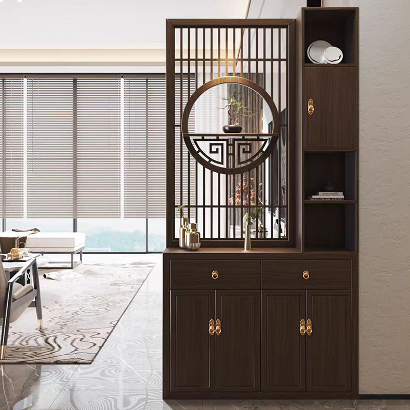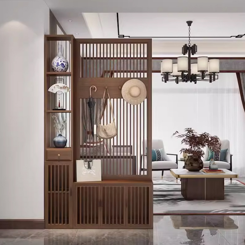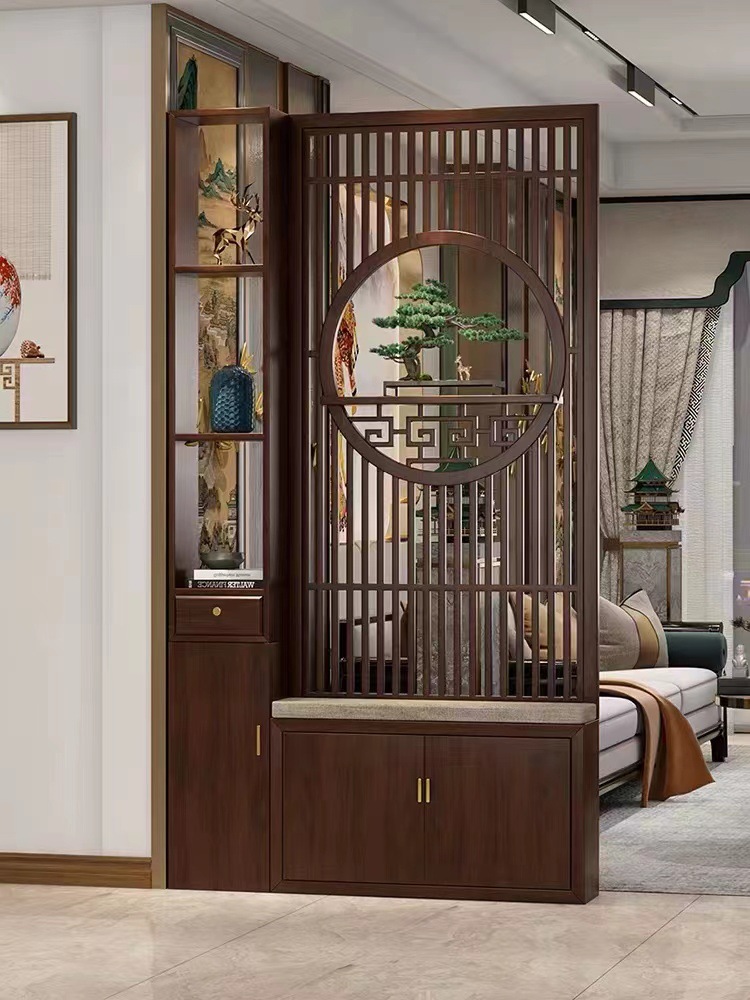 새로운 중국 스타일의 단단한 나무 스크린 파티션 거실 문 대피소 신발 캐비닛 입구 문 2024 새로운 좌석 화면스토어 가기