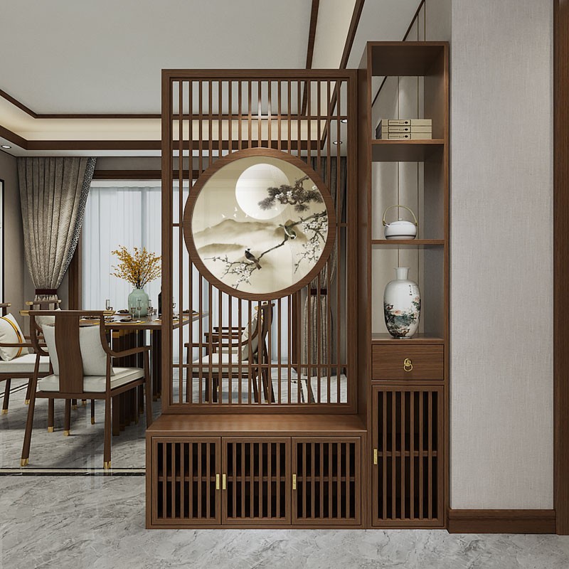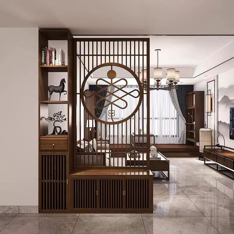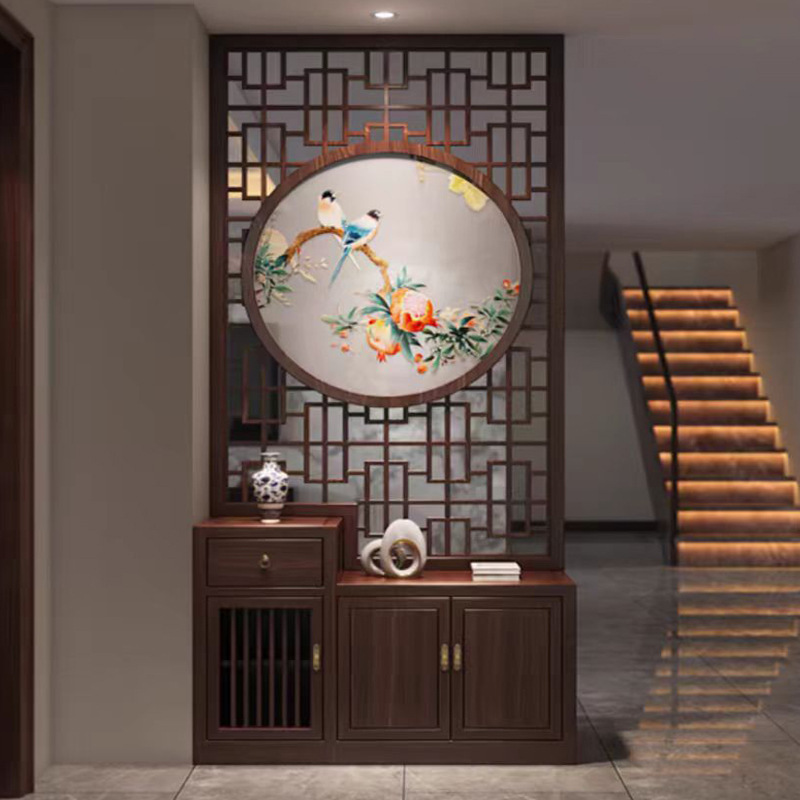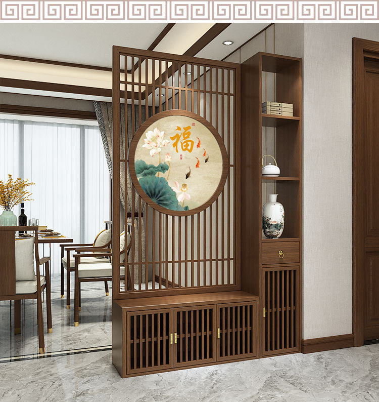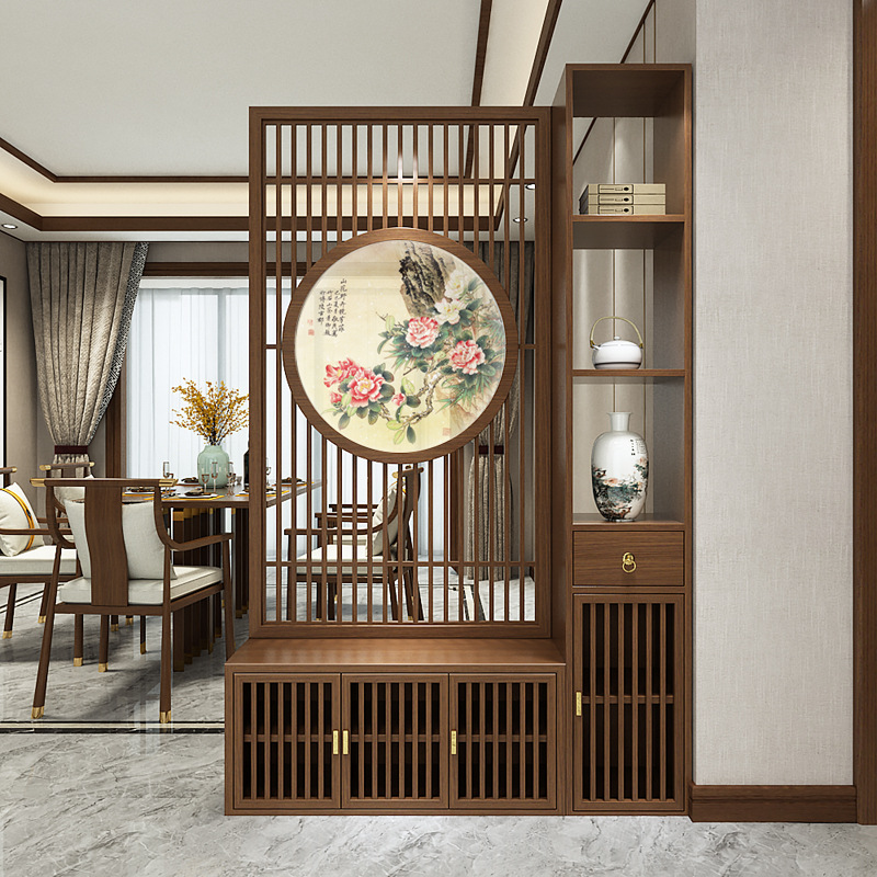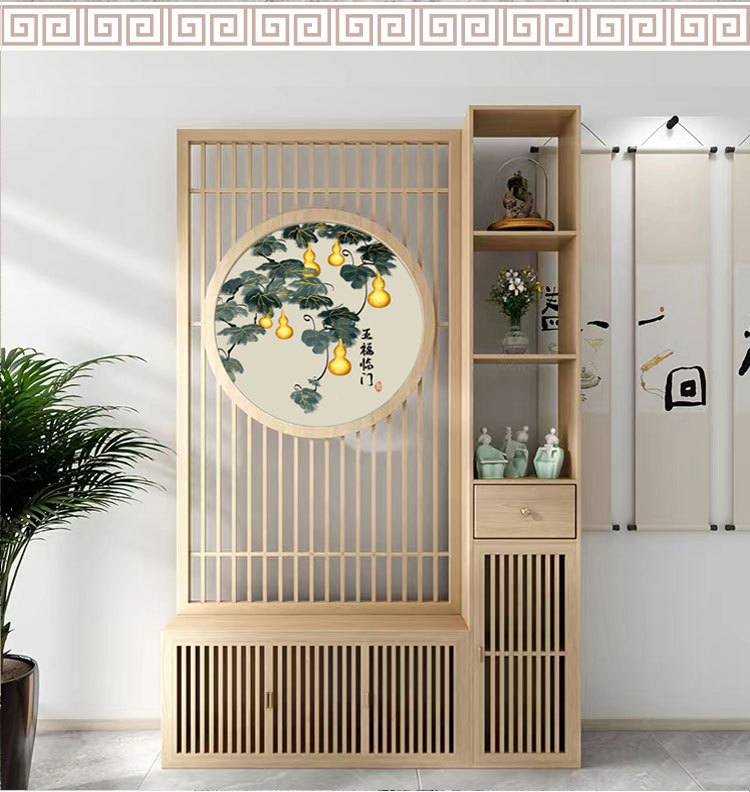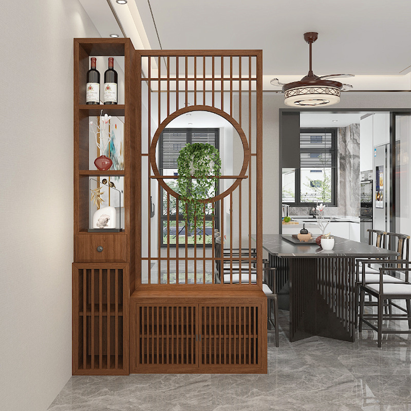 새로운 중국 스타일의 단단한 나무 스크린 파티션 거실 문 대피소 신발 캐비닛 입구 문 2024 새로운 좌석 화면스토어 가기