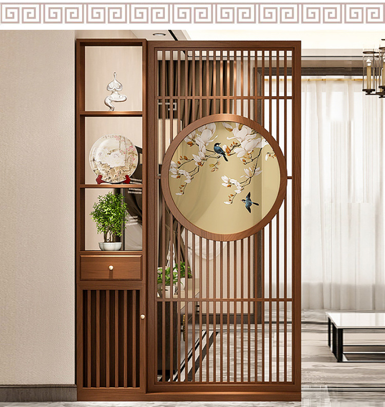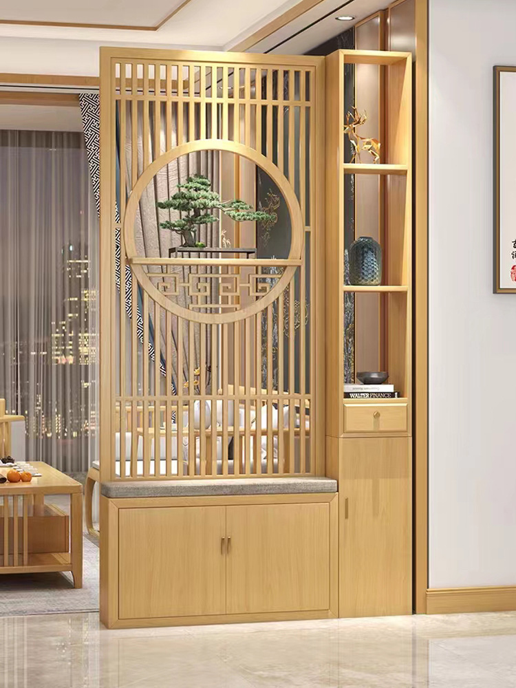 새로운 중국 스타일의 단단한 나무 스크린 파티션 거실 문 대피소 신발 캐비닛 입구 문 2024 새로운 좌석 화면