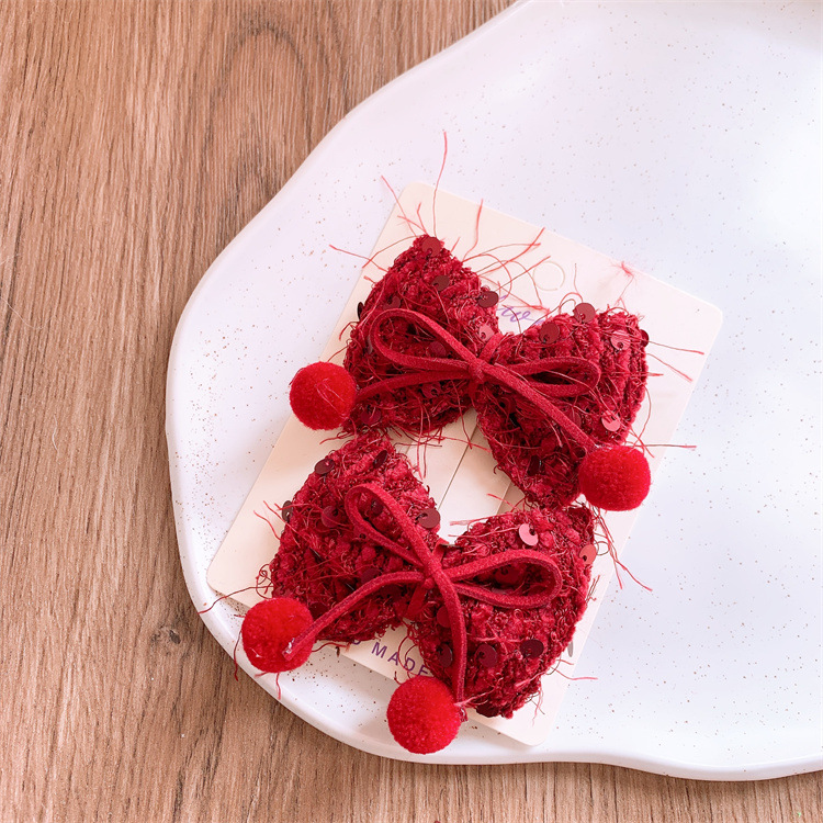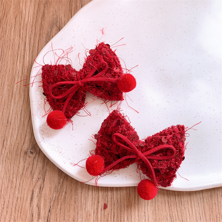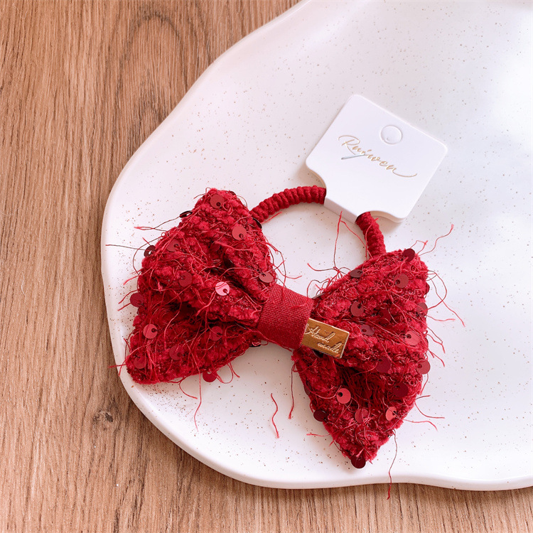 어린이 붉은 새해 왕관 활 헤어핀 헤어 밴드 소녀 샤넬 한푸 헤드 웨어 헤어핀 헤어 로프