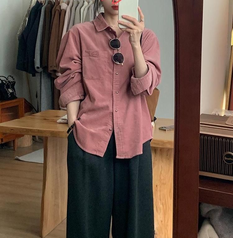 핑크 코듀로이 셔츠 재킷 여성의 가을과 겨울 새로운 디자인 레트로 게으른 작은 긴 소매 셔츠 탑스토어 가기