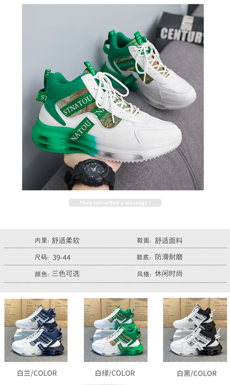 남자 하이탑 신발 가을과 겨울 풀 팜 에어 쿠션 충격 흡수 스포츠 런닝 신발 중학생 청소년 캐주얼 높이 증가 아빠스토어 가기