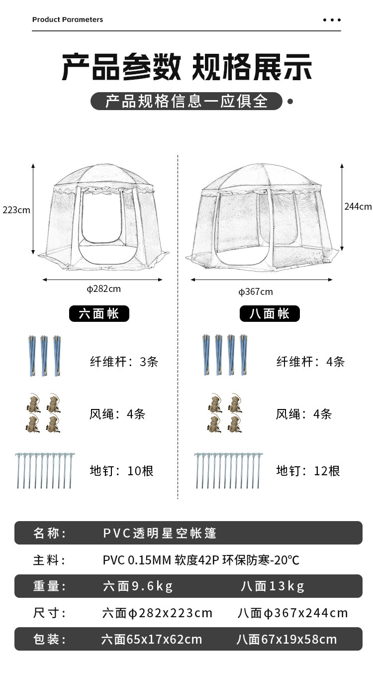 새로운 야외 투명 텐트 pvc 그물 레드 스타 빈 방 방비 따뜻한 휴대용 접이식 거품 방 재고