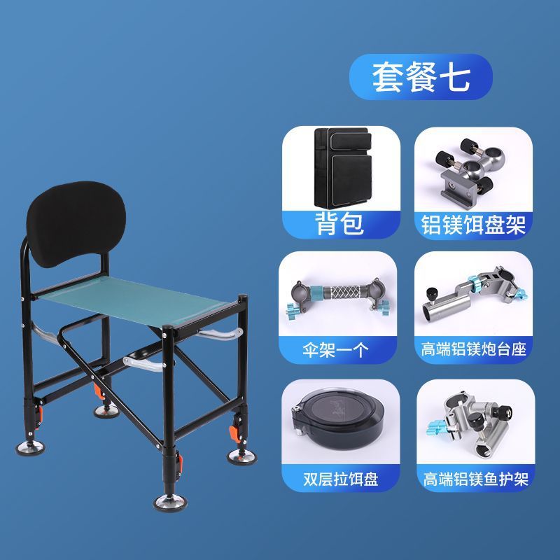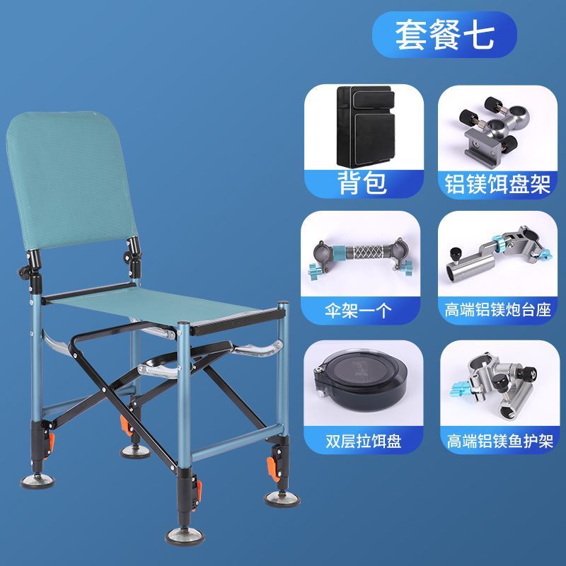 • 알루미늄 합금 블루 나이트 낚시 의자 - 원형 그립 - 리클라이닝 - 패키지 7