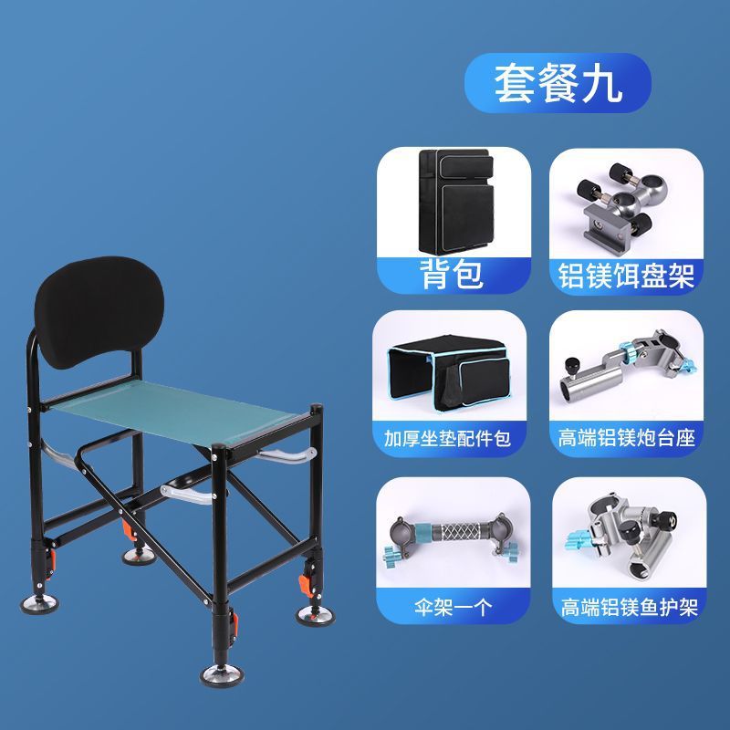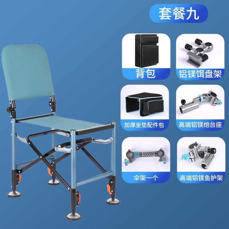 • 알루미늄 합금 블루 나이트 낚시 의자 - 원형 그립 - 리클라이닝 - 패키지 9